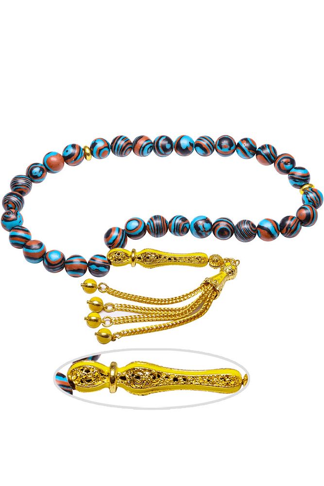 Ürün ya da Doğal Taş Açıklaması (Pozitif Enerji, Para ve Sağlık Taşı) Fransız galalit tesbih modelleri, ''Tesbih Atölyesi'' Atölyelerinde ustalarımız tarafından kuru torna işciliği ile elde özen ile tane tane işlenmektedir. Ürünlerimiz el işciliği olduğu için sınırlı sayıda üretilmektedir. Tasarımlarımızda kullandığımız taşlar Dünya'nın en kaliteli taşlarını ithal etmekteyiz. Bu tasarımda; ''İnek sütü ile karıştırılan özel kahverengi, mavi, siyah renkli fransız galalit taşından imal edilmiştir. İmame ve Püskül yapımında; 24 ayar altın kaplama sarı mineli telkari imame ve püskül seti kulanılmıştır. 'Çift kaplama rodaj sistemi uygulandığı için renk atmaz ve kararmaz bir yapıya sahiptir. Üretildiği Taş; Galalit Taşı; Ana Renk; Doğal Renk; Ağırlık; 20-30 gr; Tane Şekli; 8x8 mm; Tane Ölçüsü; Küre Kesim; Toplam Uzunluk; 20-30 cm; İmame ve Püskül Maddesi; Düşük Ayar Gümüş;