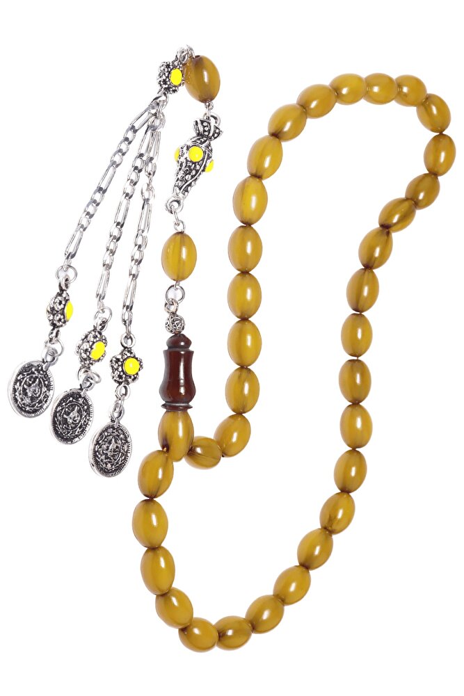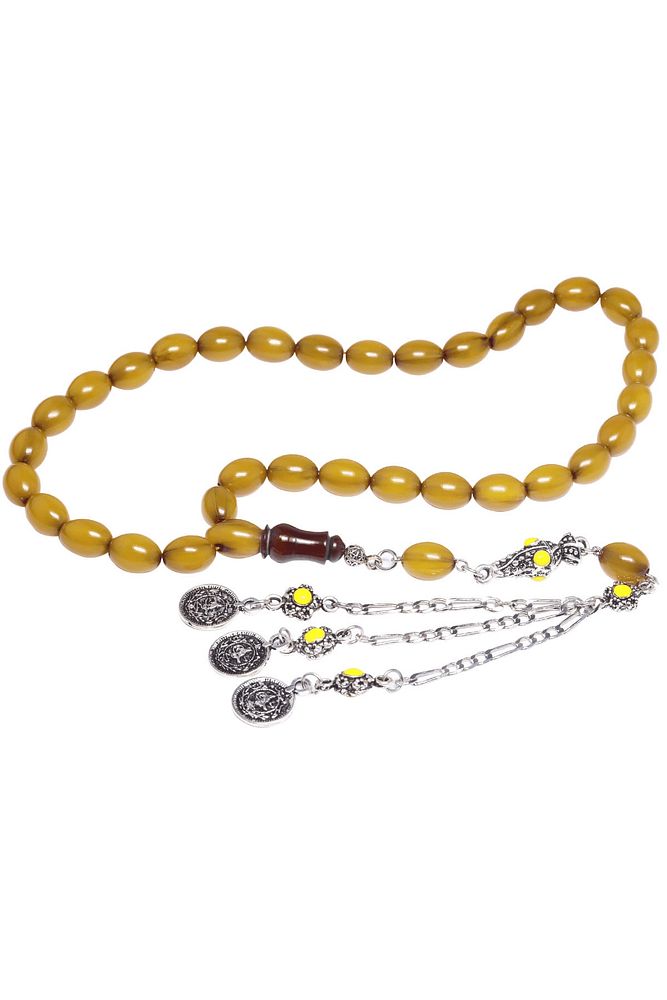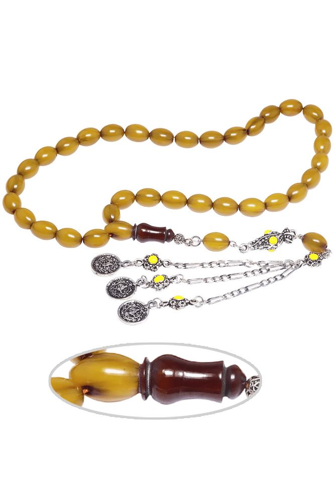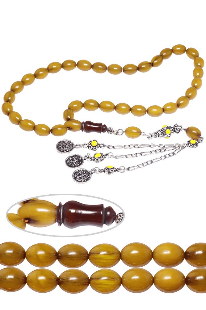 Sertifikalı Sarı Renk Dik Damar Halep Püskül Osmanlı Benzetmesi Çubuk Sıkma Kehribar Tesbih