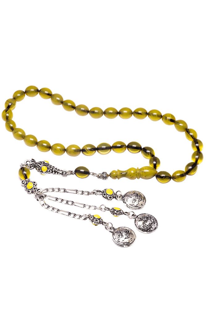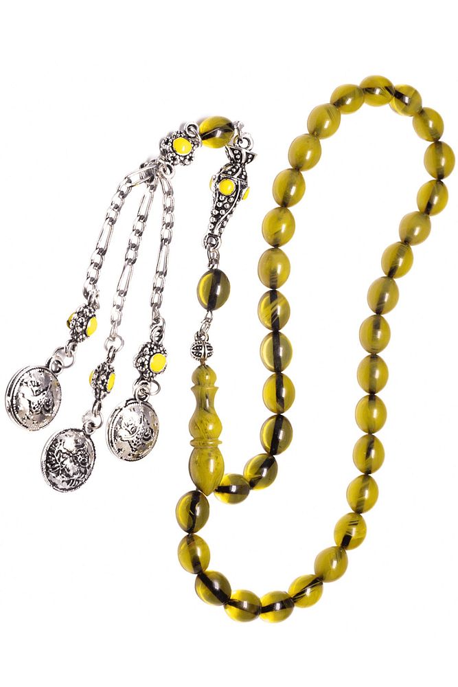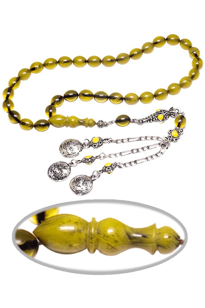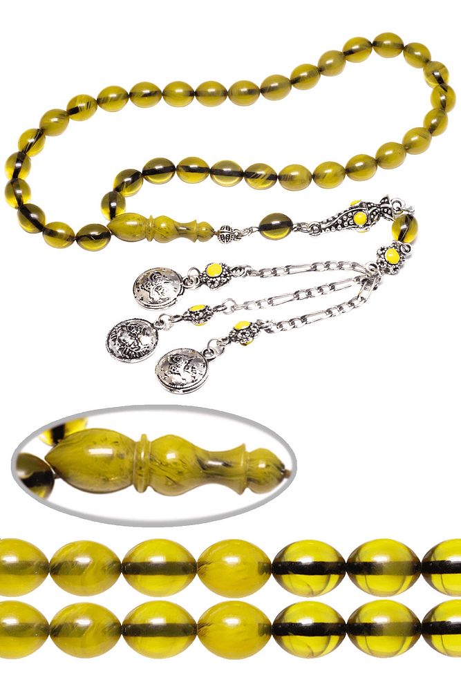 Sertifikalı Sarı Renk Hüzmesi Osmanlı Benzetmesi Çubuk Sıkma Kehribar Tesbih