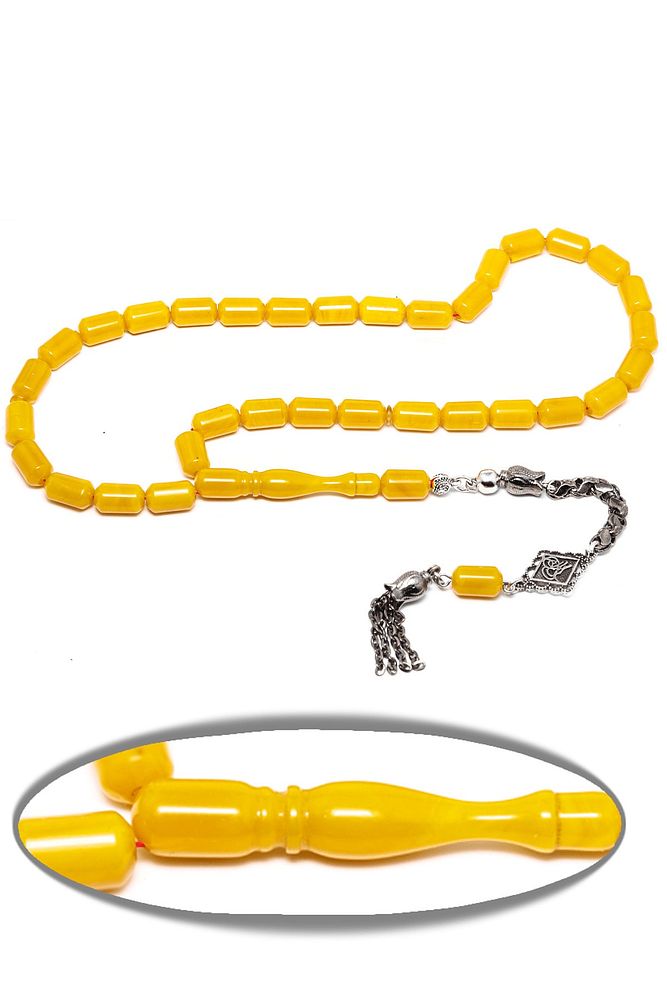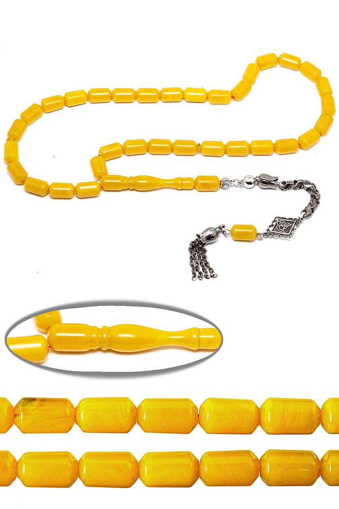 Sertifikalı Sarı Renk Kapsül Kesim Sıkma Kehribar Tesbih