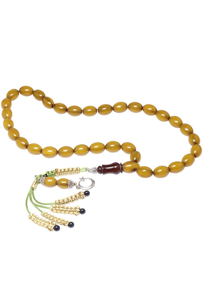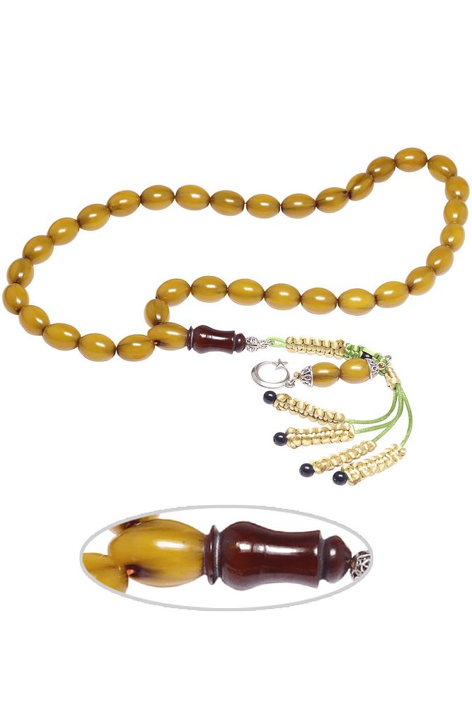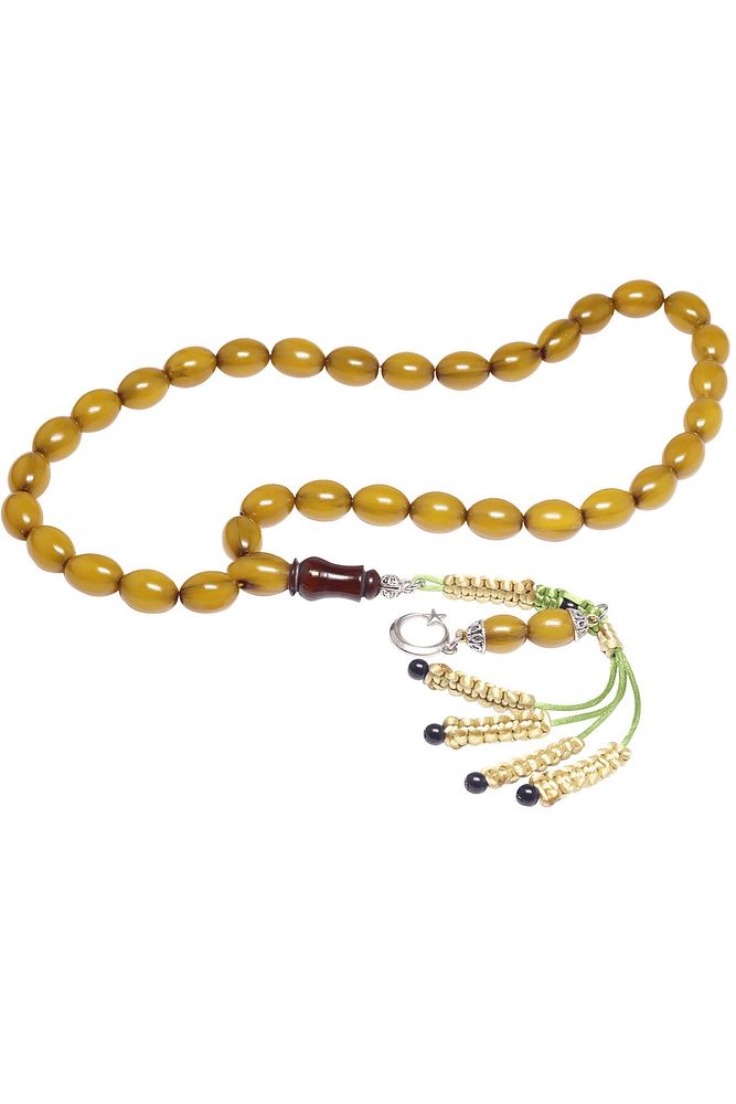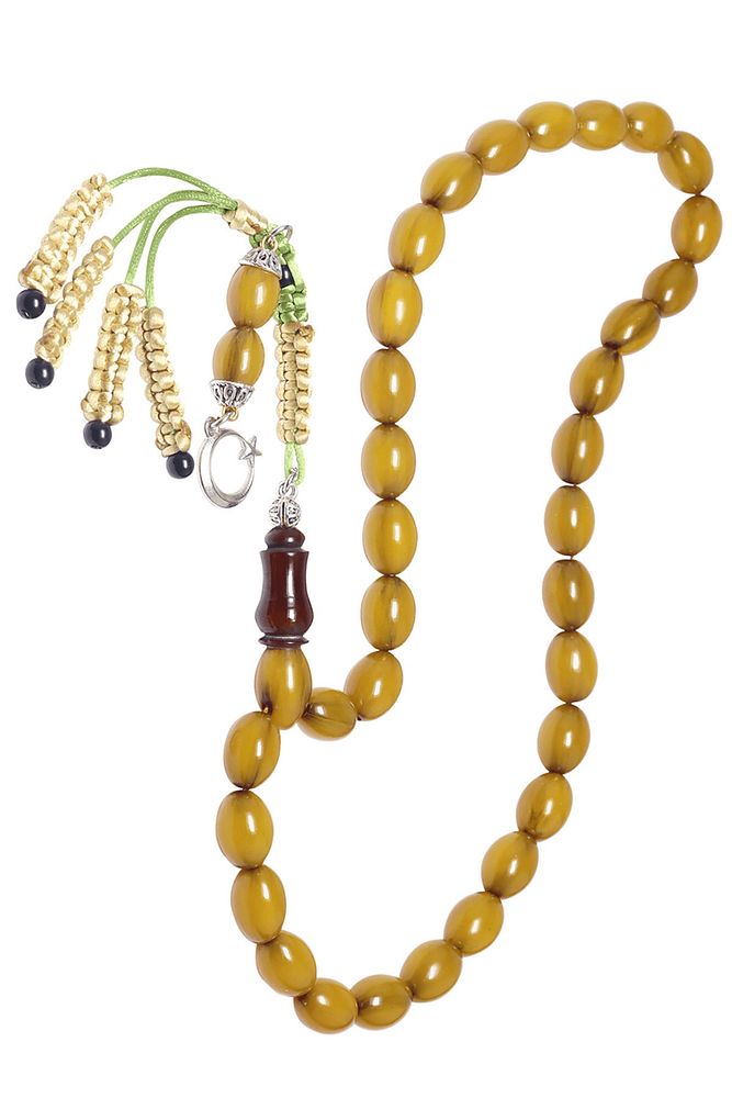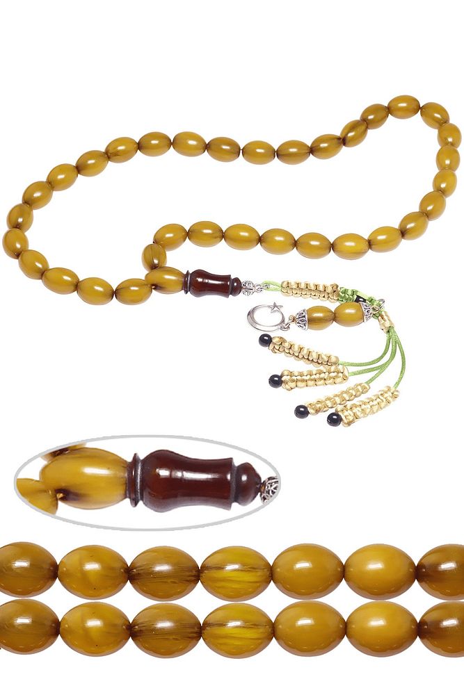 Sertifikalı Sarı Renk Tıraşlı Beyzi Kesim Osmanlı Benzetmesi Çubuk Sıkma Kehribar Tesbih