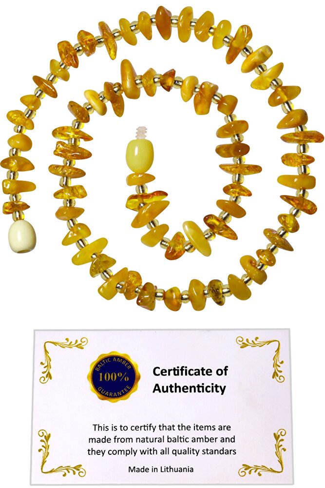 Sertifikalı Sarı Renkli Doğal Damla Kehribar Bebek Diş Kolyesi