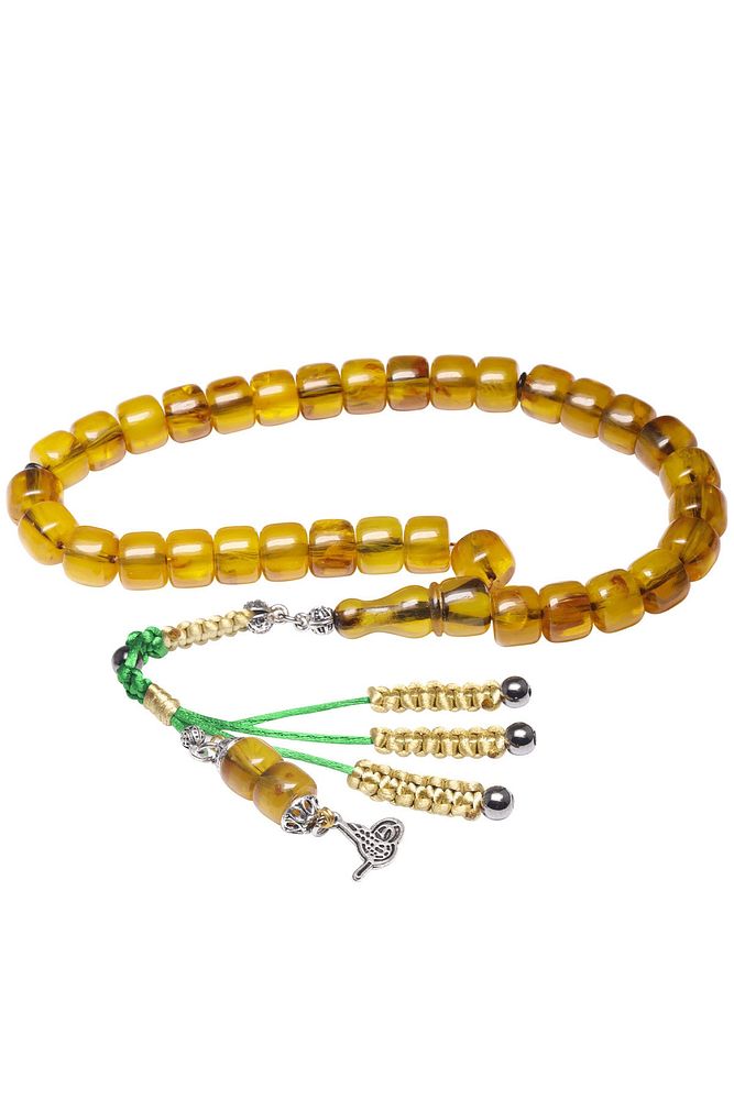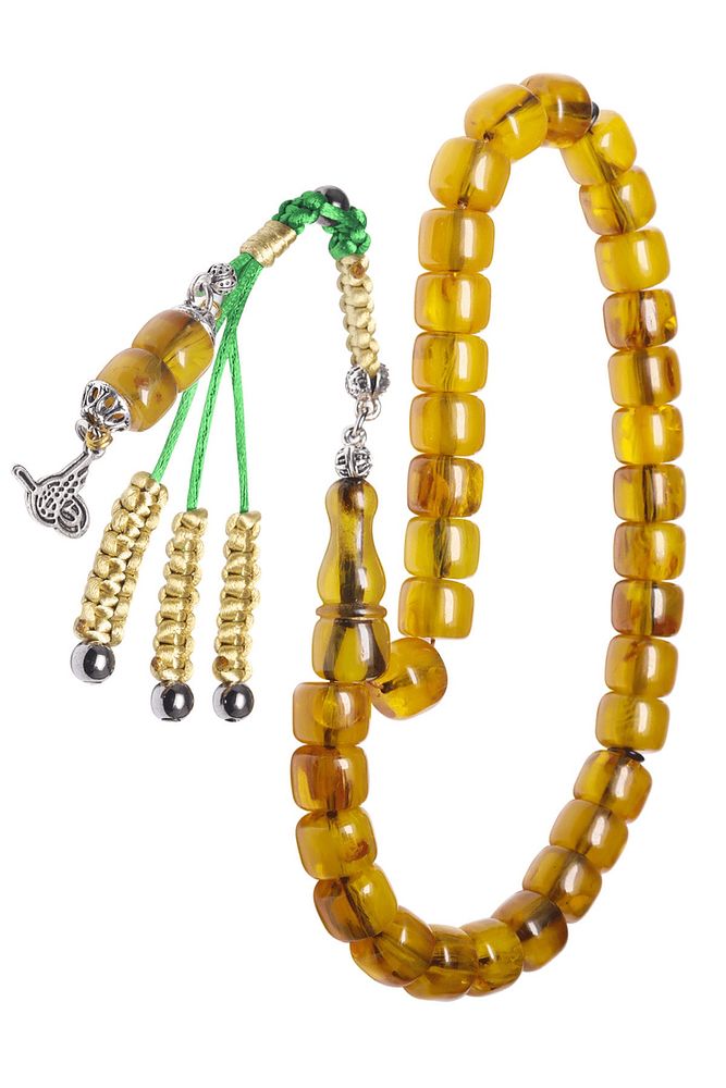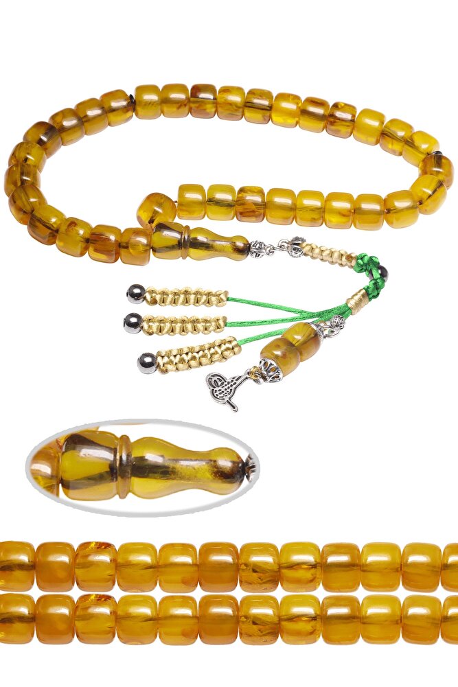 Sertifikalı Sarı Renkli Fıçı Kesim Yeşil Sıkma Kehribar Tesbih