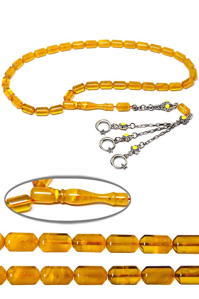 Ürün ya da Doğal Taş Açıklaması; ; (Baş Ağrısı Sinir ve Stres); Tesbih Atölyesi, Sıkma kehribar tesbih, tasarımları özel olarak usta ellerde tasarlanır. Tasarımlarımız el yapımı olup sınırlı adette üretilmektedir. Tasarımlarda kullanılan püsküller düşük ayar gümüşten imal edilir. Tasarımlarda kullanılan kehribar taneleri hareli özel kalıplardan yapılır. Yapay reçine ile üretilmektedir. Ürünlerimiz renk almakta ve koku vermektedirler. ; Bu tasarımda; Sarı ve şeffaf renkli özel renk hüzmesi 1.kalite sıkma kehribar reçine kullanılmıştır. Her kehribar tanesi birbirinin aynısı olmadığı için küçükte olsa farklılıklar gösterebilir.; Üretildiği Malzeme; Sıkma Kehribar; Ana Renk; Sarı ve Şeffaf Renk; Ağırlık; 20-30 gr; Tane Şekli; 8x12 mm; Tane Ölçüsü; Kapsül Kesim; Toplam Uzunluk; 20-30 cm; İmame ve Püskül Maddesi; Düşük Ayar Gümüş;