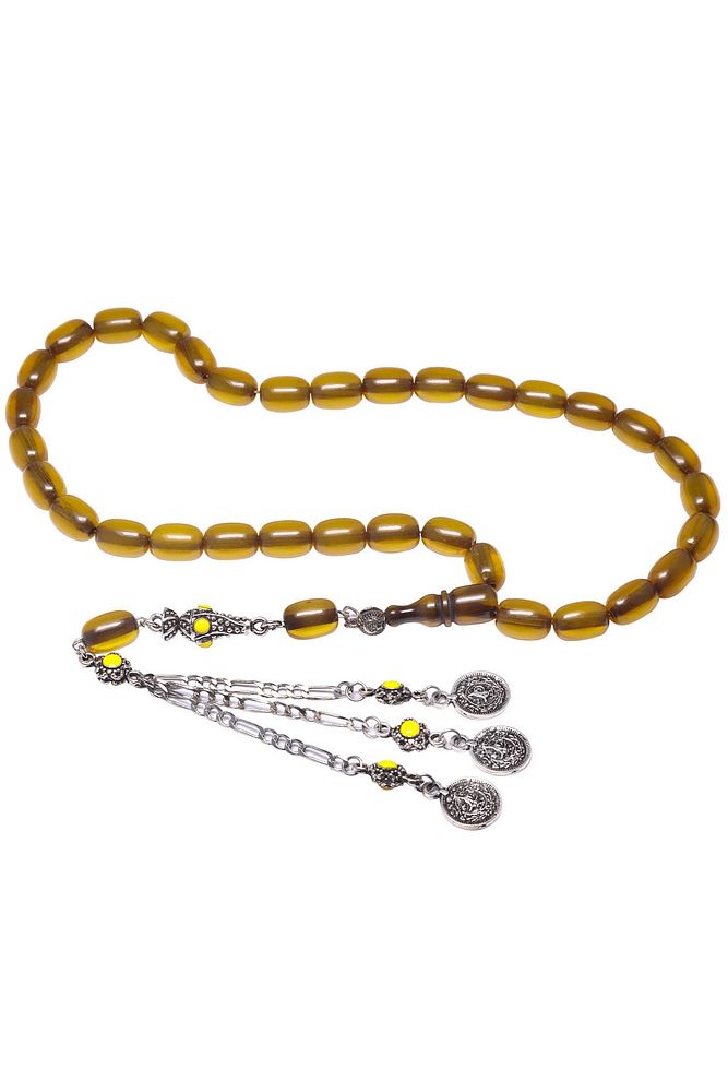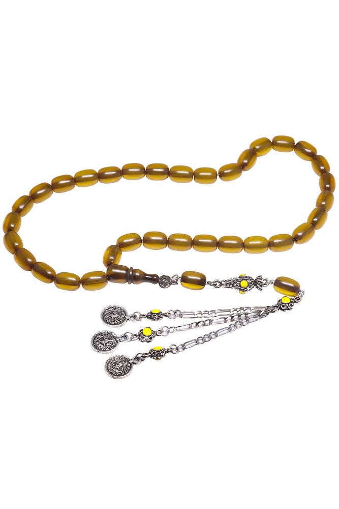 Sertifikalı Sarı Renkli Kapsül Osmanlı Benzetmesi Çubuk Sıkma Kehribar Tesbih