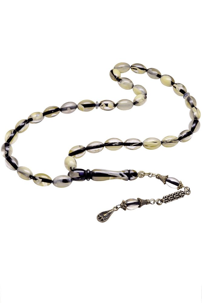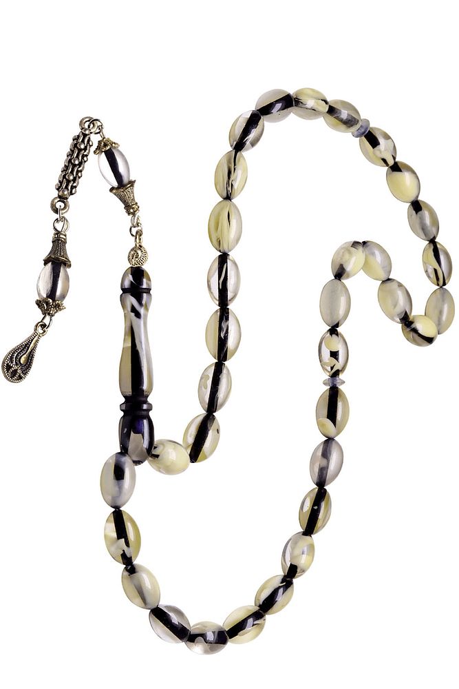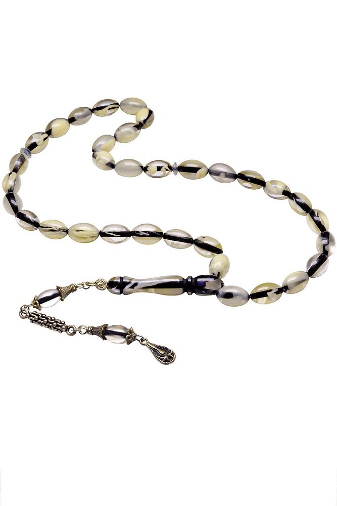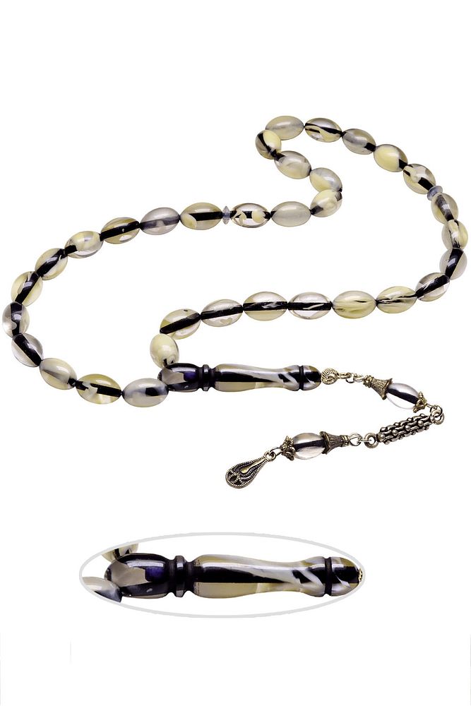 Sertifikalı Şeffaf Delim Siyah Beyaz Renk Hareli Toz Kehribar Tesbih