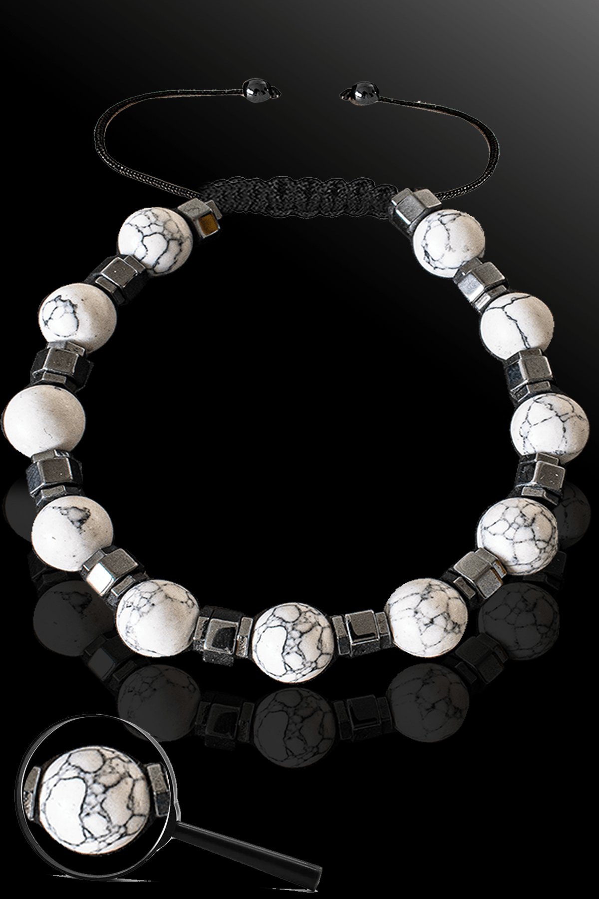 Sertifikalı Silver Hematitli 8 Mm Doğal Havlit Taşı Bileklik - Ayarlamalı