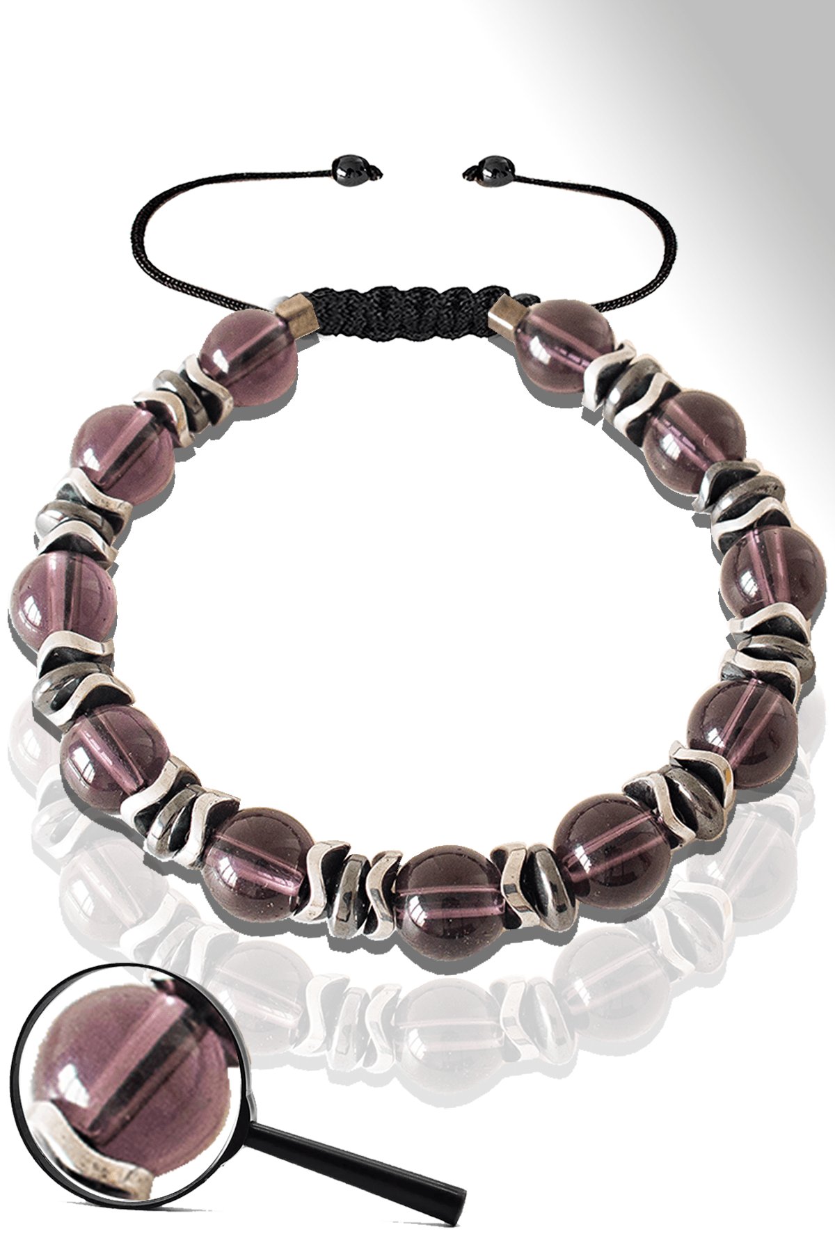 Sertifikalı Silver Hematitli Fuşya Cam Kuvars Taşı Bileklik - Ayarlamalı