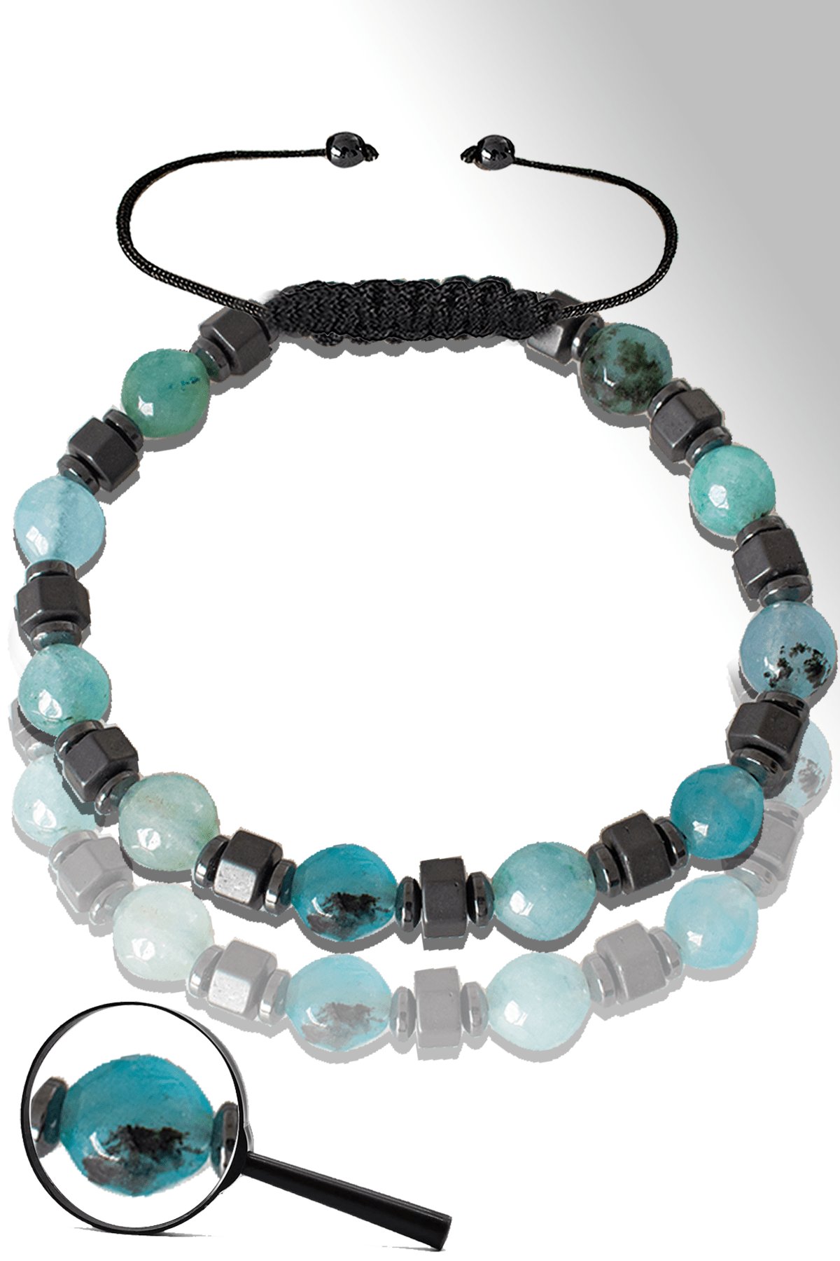 Sertifikalı Silver Hematitli Mavi Akik Taşı Bileklik - Ayarlamalı