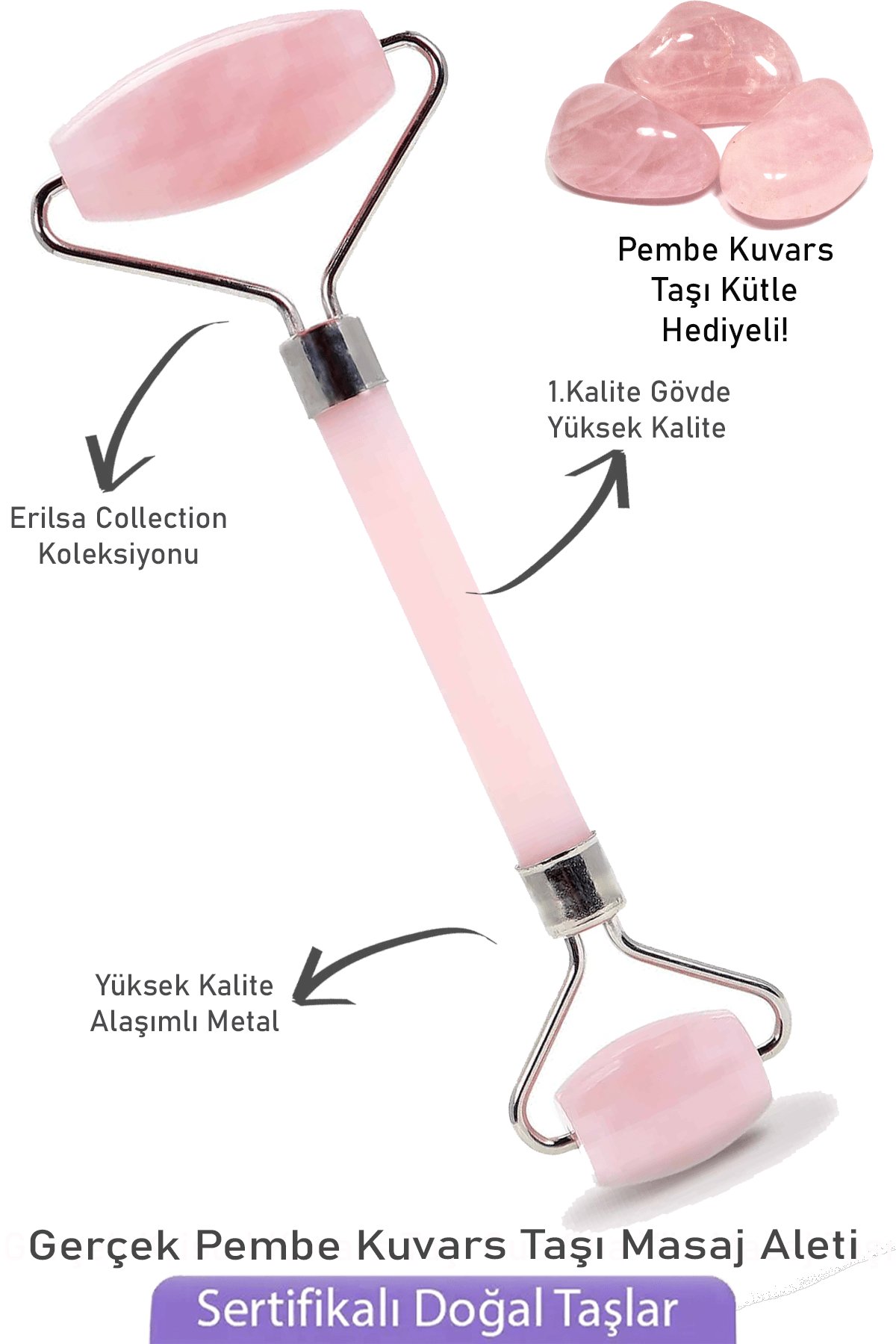 Sertifikalı Silver Pembe Kuvars Taşı Yüz Masaj Aleti - Kütle Hediyeli