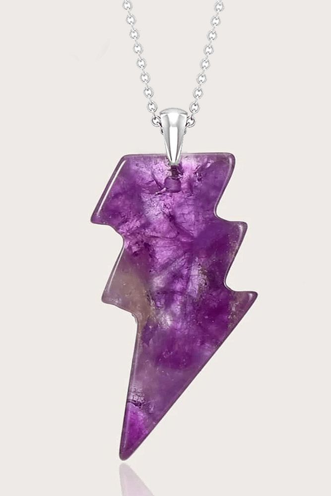 Sertifikalı Şimşek Model Ametist Taşı Kolye - Aaa+ Kalite