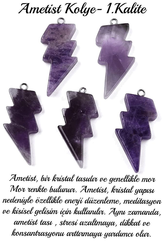 Bu doğal taş kolye tasarımımızda; Ametist taşı kolye kullanılmıştır. Zincir ölçüsü 45 cm'dir. Her için uyumludur. Yetişkin ve çocuk için kullanılabilir. %100 Orijinal ve gerçek taştır. inizi stresinizi alacak, mineral açısından oldukça zengin olduğu için bulunduğu için teniniz ile temas eder etmez aradaki farkı kısa bir süre içinde hissedeceksiniz.
