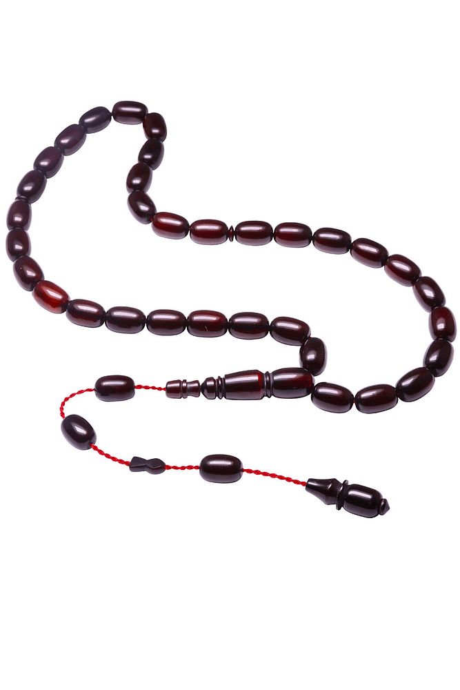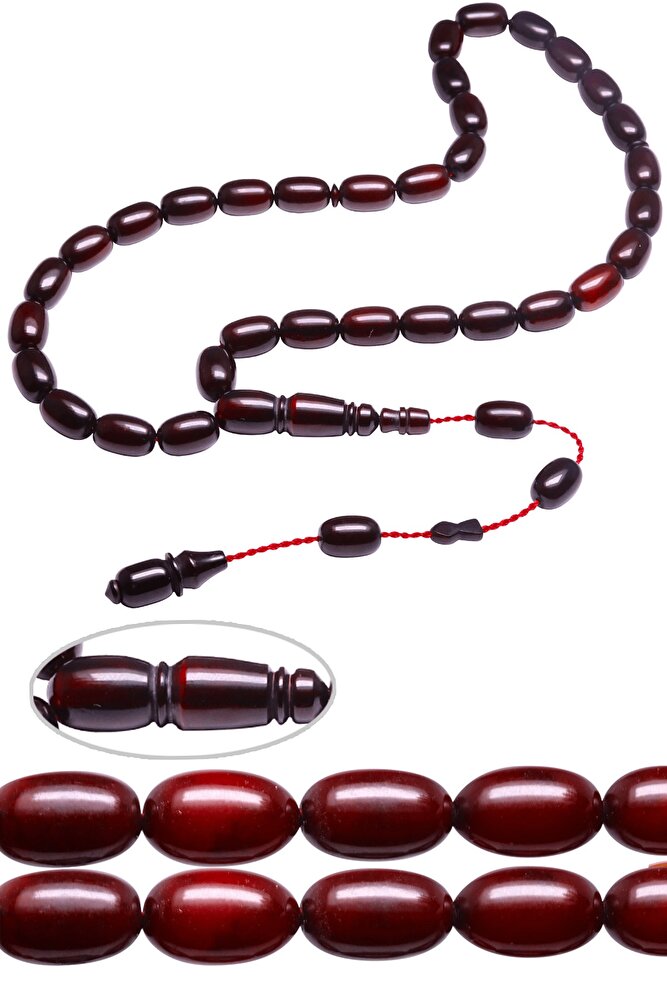 Sertifikalı Sistemli Bordo Renk Osmanlı Benzetmesi Çubuk Sıkma Kehribar Tesbih