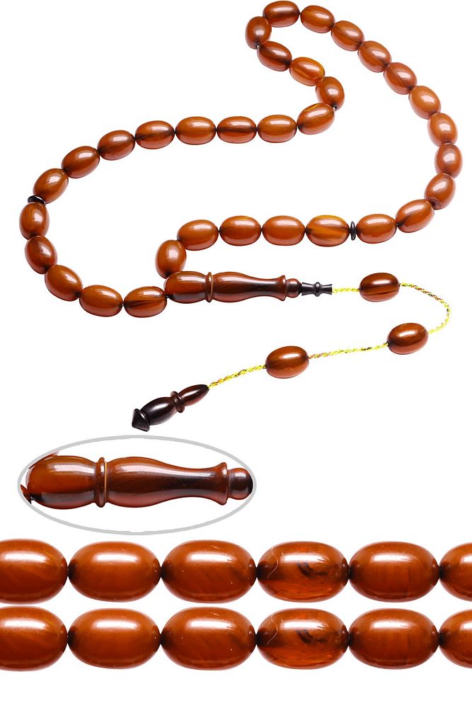 (Baş Ağrısı Sinir ve Stres) ; Tesbih Atölyesi, Sıkma kehribar tesbih, tasarımları özel olarak usta ellerde tasarlanır. Tasarımlarımız el yapımı olup sınırlı adette üretilmektedir. Tasarımlarda kullanılan püsküller düşük ayar gümüşten imal edilir. Tasarımlarda kullanılan kehribar taneleri hareli özel kalıplardan yapılır. Yapay reçine ile üretilmektedir. Ürünlerimiz renk almakta ve koku vermektedirler. ; ; Bu tasarımda; Yoğun sarı renkli muhteşem kalitede 1.kalite çubuk sıkma kehribar reçine kullanılmıştır. Her kehribar tanesi birbirinin aynısı olmadığı için küçükte olsa farklılıklar gösterebilir.; ; Üretildiği Malzeme; Sıkma Kehribar; Ana Renk; Kahverengi Renk; Ağırlık; 20-30 gr; Tane Şekli; 9x11 mm; Tane Ölçüsü; Tombul Beyzi Kesim; Toplam Uzunluk; 20-30 cm; İmame ve Püskül Maddesi; Sistemli;