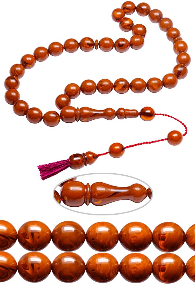 Sertifikalı Sistemli Turuncu Osmanlı Benzetmesi Çubuk Sıkma Kehribar Tesbih