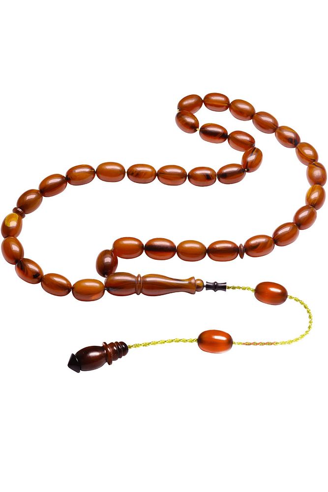Sertifikalı Sistemli Turuncu Renk Osmanlı Benzetmesi Çubuk Sıkma Kehribar Tesbih