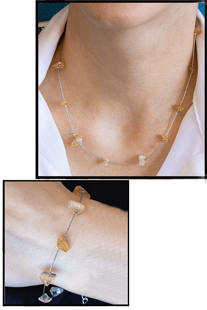 Sertifikalı Sitrin Taşlı Doğal Taş Kolye Bileklik Seti