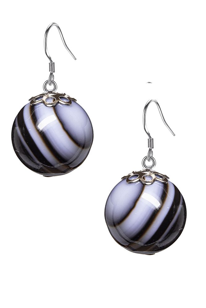 Sertifikalı Siyah Akik Doğal Taş Küpe