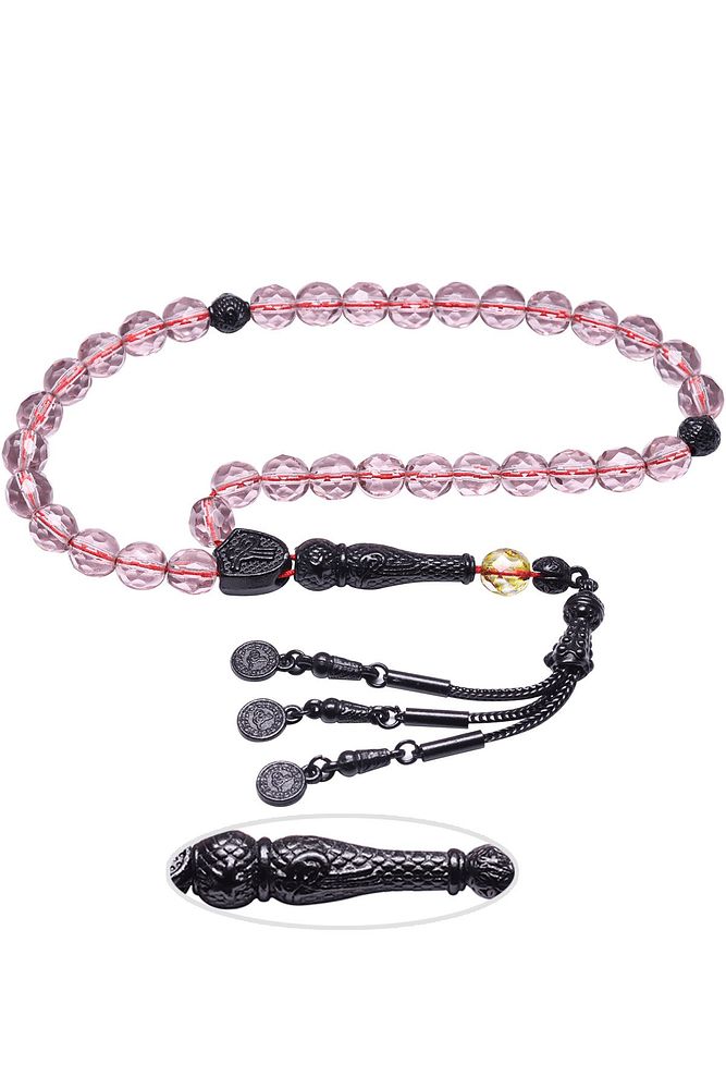 Ürün ya da Doğal Taş Açıklaması (Para – Sağlık – Pozitif Enerji Taşı) Kuvars tesbih modelleri, ”Tesbih Atölyesi” Atölyelerinde ustalarımız tarafından kuru torna işciliği ile elde özen ile tane tane işlenmektedir. Ürünlerimiz el işciliği olduğu için sınırlı sayıda üretilmektedir. Tasarımlarımızda kullandığımız taşlar Dünya’nın en kaliteli doğal taşlarını kullanmaktayız. Tasarımlarımızda kullandığımız doğal taşların hiç biri birbirinin aynısı olmadığı için küçükte olsa farklılık gösterebilir. Doğal taşlar vücudunuza temas ettiği anda negatif enerjilerinizi alır ve pozitif enerjiler verir. Bu tasarımda; Mor renkli doğal fasetli kuvars taşı ve Siyah nikel alaşımlı imame ve püskül seti kullanılmıştır. Çift kaplama atıldığı için renk atmaz ve kararmaz bir yapıya sahiptir. Yedek ip ile gönderim sağlanır. Üretildiği Taş; Kuvars; Ana Renk; Doğal Renk; Ağırlık; 20-30 gr; Tane Şekli; 8×8 mm; Tane Ölçüsü; Küre Kesim; Toplam Uzunluk; 20-30 cm; İmame ve Püskül Maddesi; Düşük Ayar Gümüş;