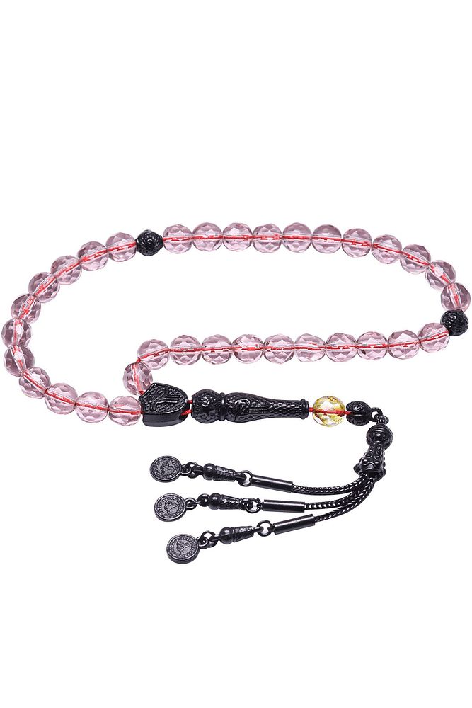 Sertifikalı Siyah Kararmaz Püskül Fasetli Mor Doğal Kuvars Taşı Tesbih