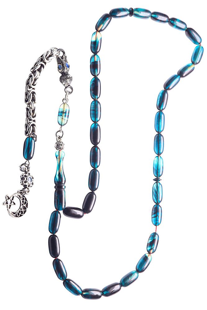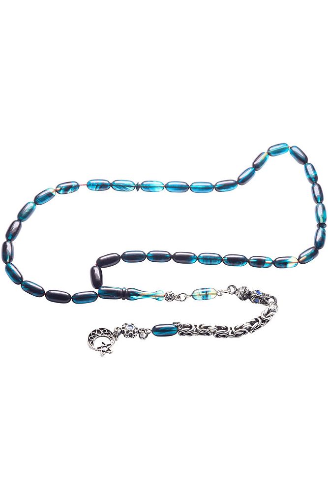 Sertifikalı Siyah Mavi Renkli Kapsül Kesim Sıkma Kehribar Tesbih