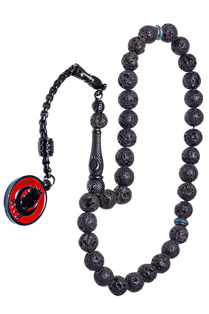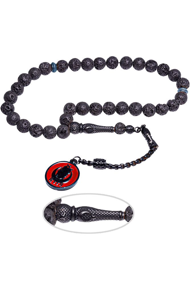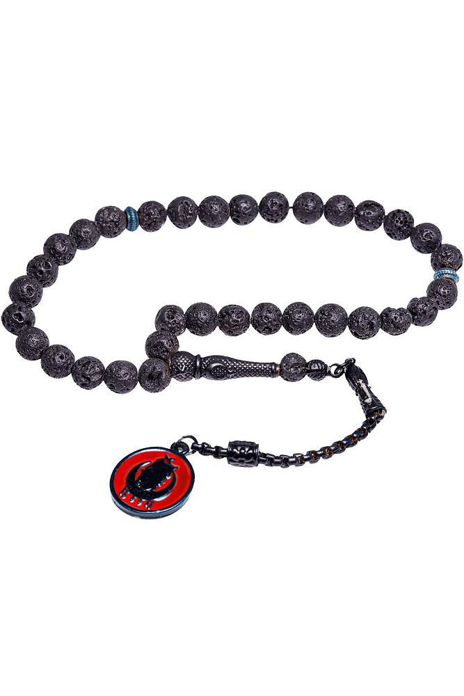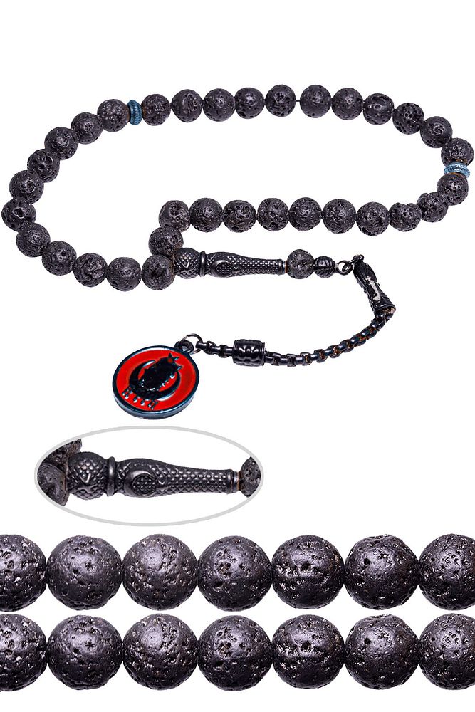 Sertifikalı Siyah Renk Atmaz Mineli Püsküllü Doğal Lav Taşı Tesbih