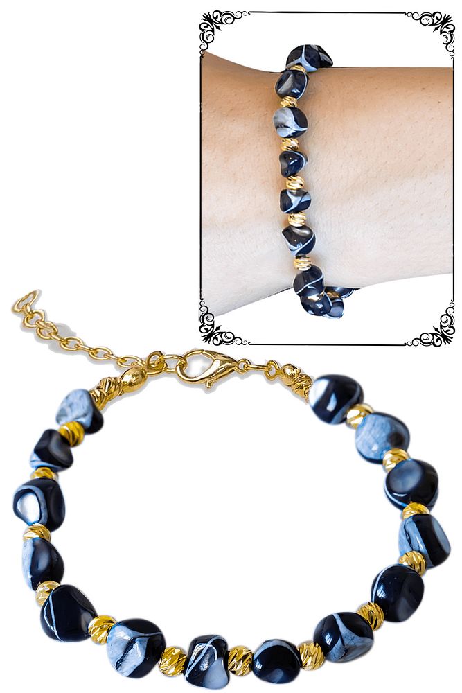Sertifikalı Siyah Sedef Taşı Bileklik - Ayarlamalı