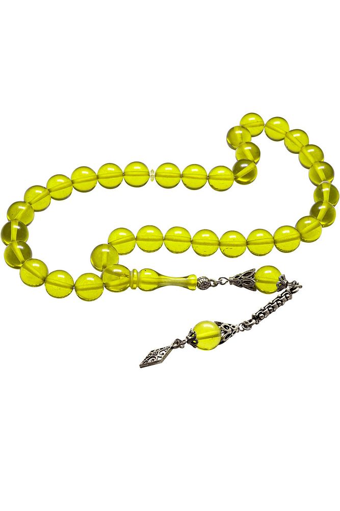 Sertifikalı Su Yeşil Renk Küre Kesim Toz Kehribar Tesbih