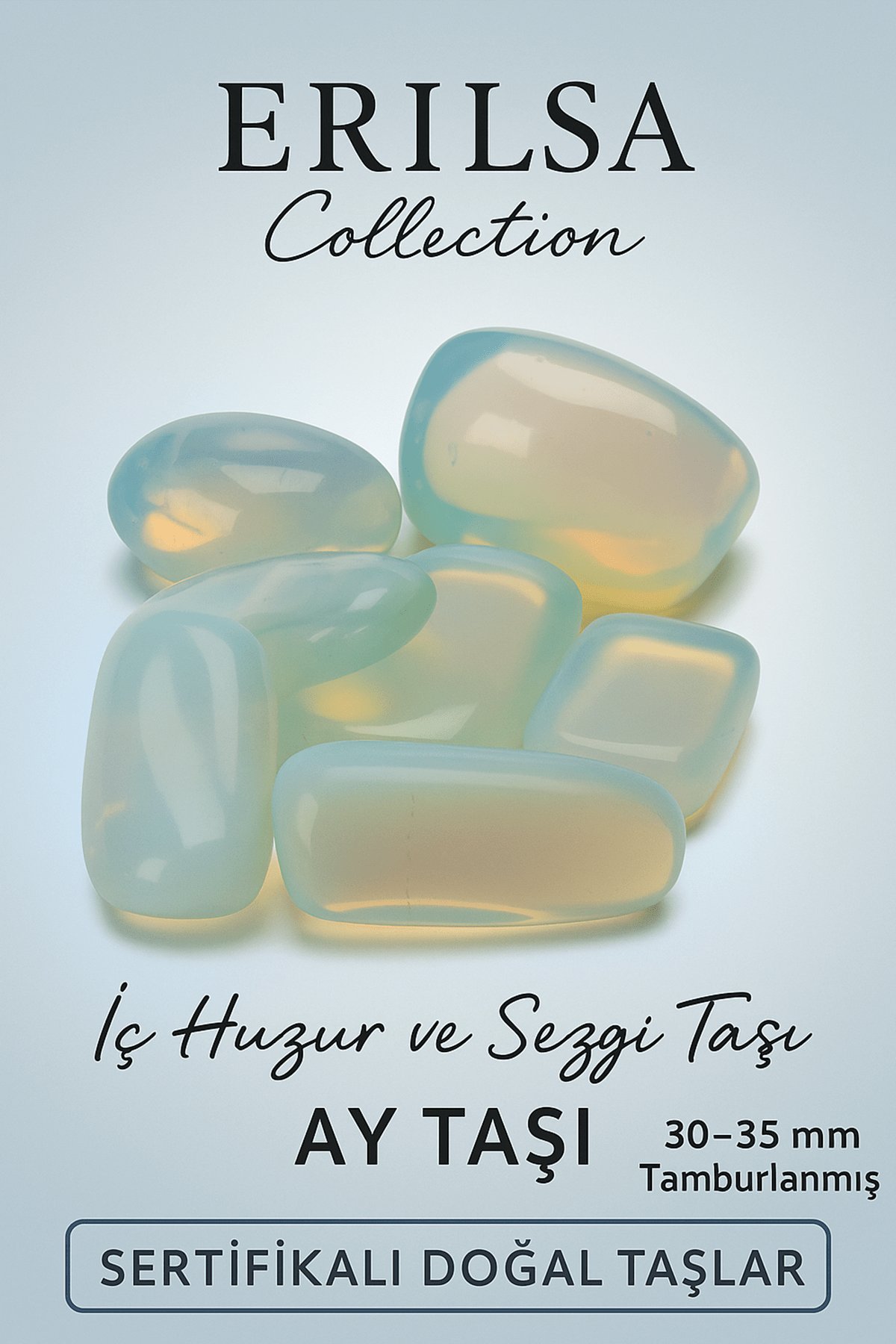 Sertifikalı Tamburlanmış Doğal Ay Taşı Kütle 30-35 mm – İç Huzur ve Güçlü Sezgi Taşı