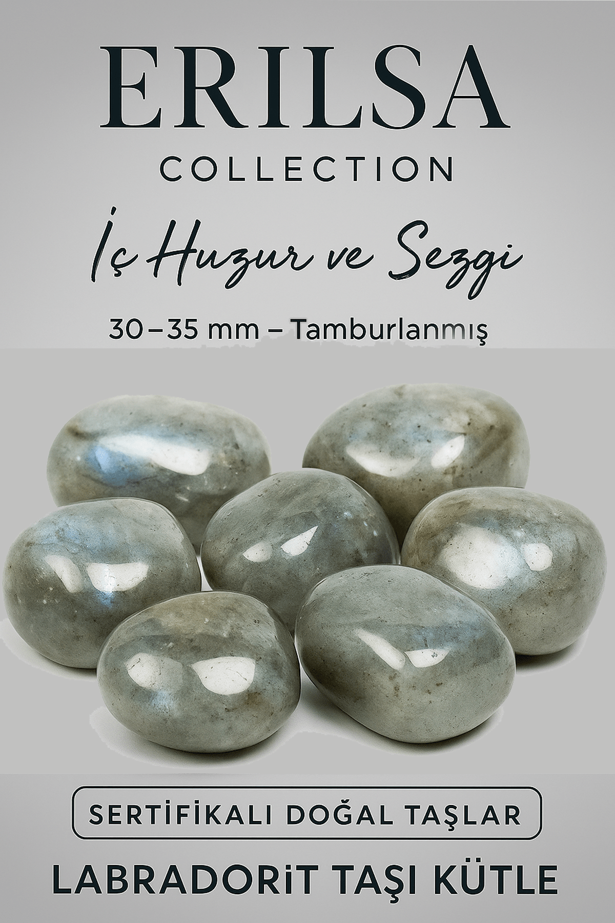 Erilsa Collection güvencesiyle %100 doğal ve sertifikalı labradorit taşı. Tamburlanmış yapısıyla parlak yüzeyli, koleksiyonluk ve enerji çalışmaları için ideal bir taştır.
