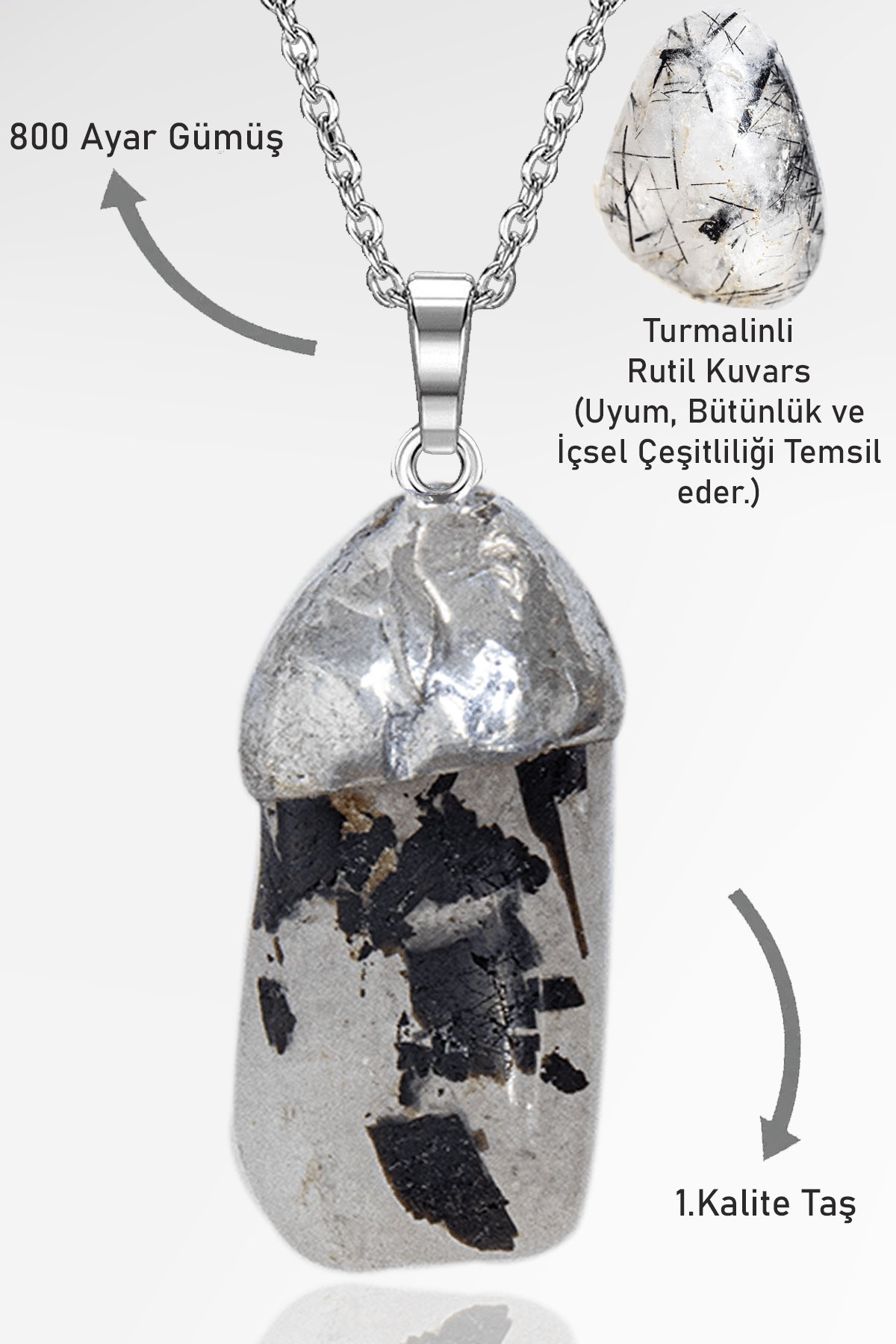 Sertifikalı Tamburlanmış Turmalinli Rutil Kuvars Taşı Kolye
