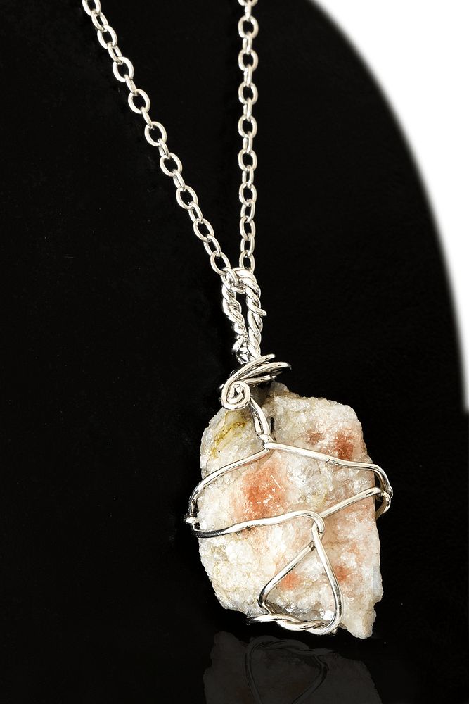 Sertifikalı Tel Sargılı Ham Güneş Taşı Kolye