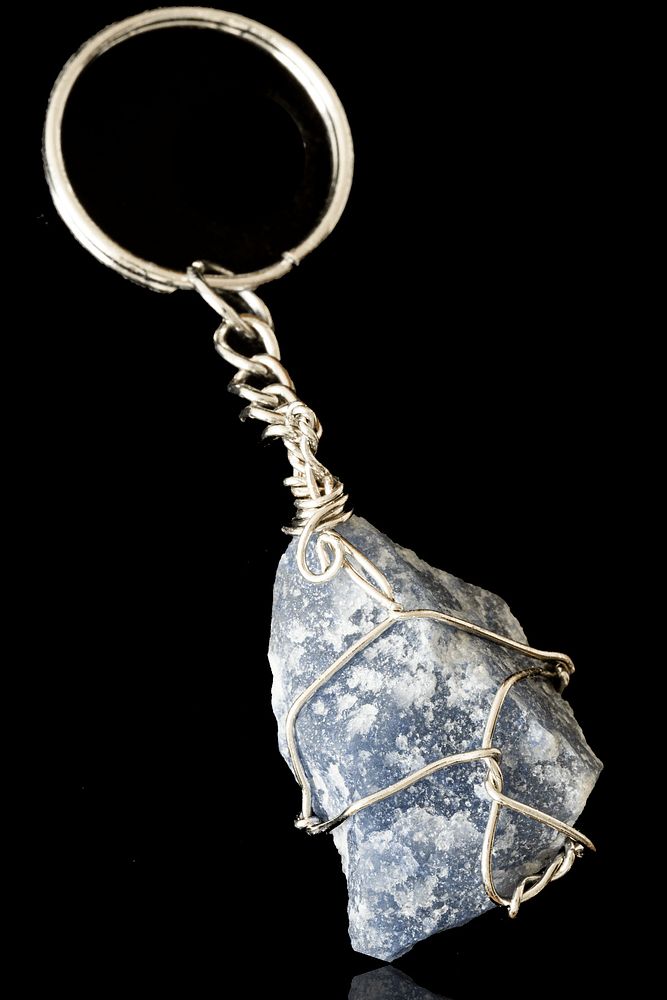 Sertifikalı Tel Sargılı Ham Işlenmemiş Angelit Melek Taşı Anahtarlık