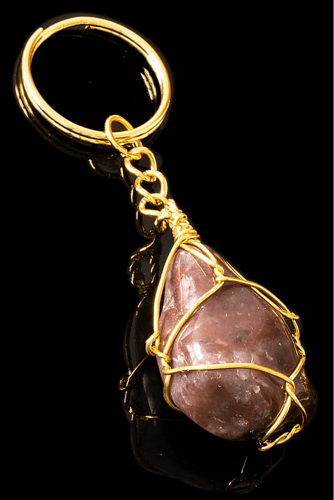 Sertifikalı Tel Sargılı Kırmızı Kalsit Taşı Anahtarlık - Altın Kaplama