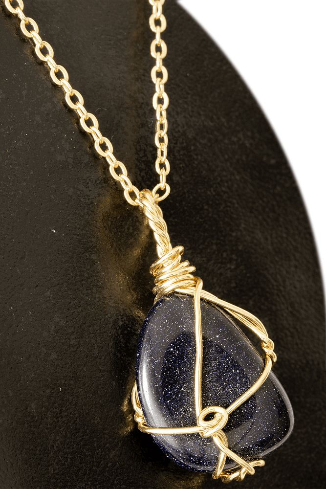 Sertifikalı Tel Sargılı Lacivert Yıldız Taşı Kolye - Altın Kaplama