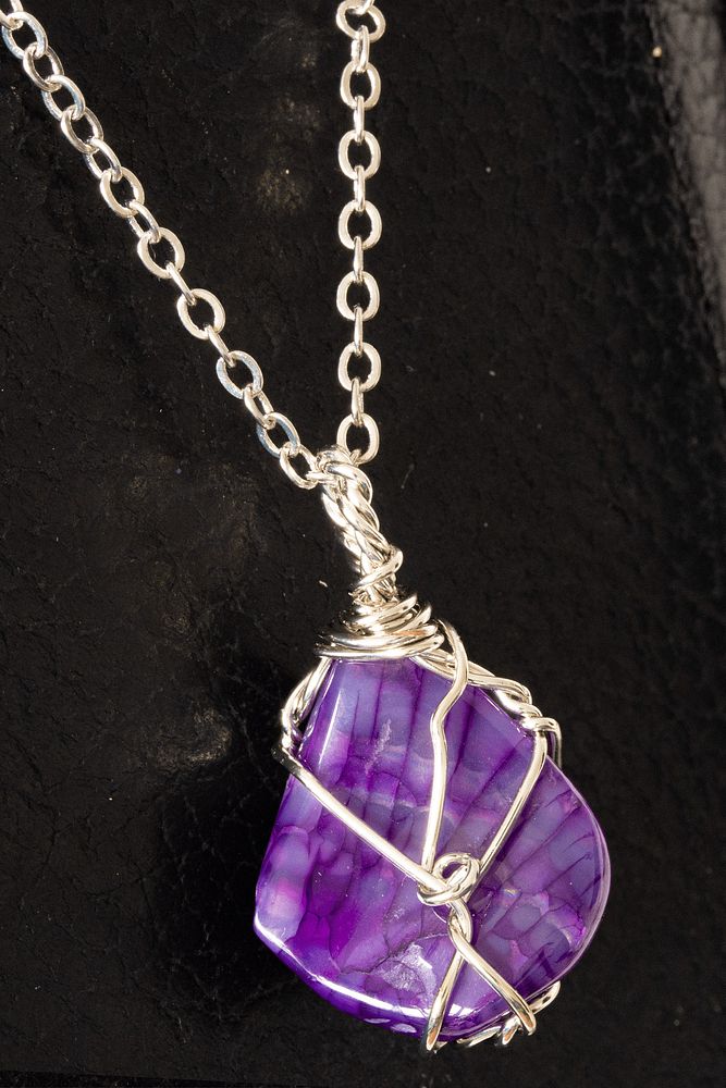 Sertifikalı Tel Sargılı Mor Akik Taşı Kolye