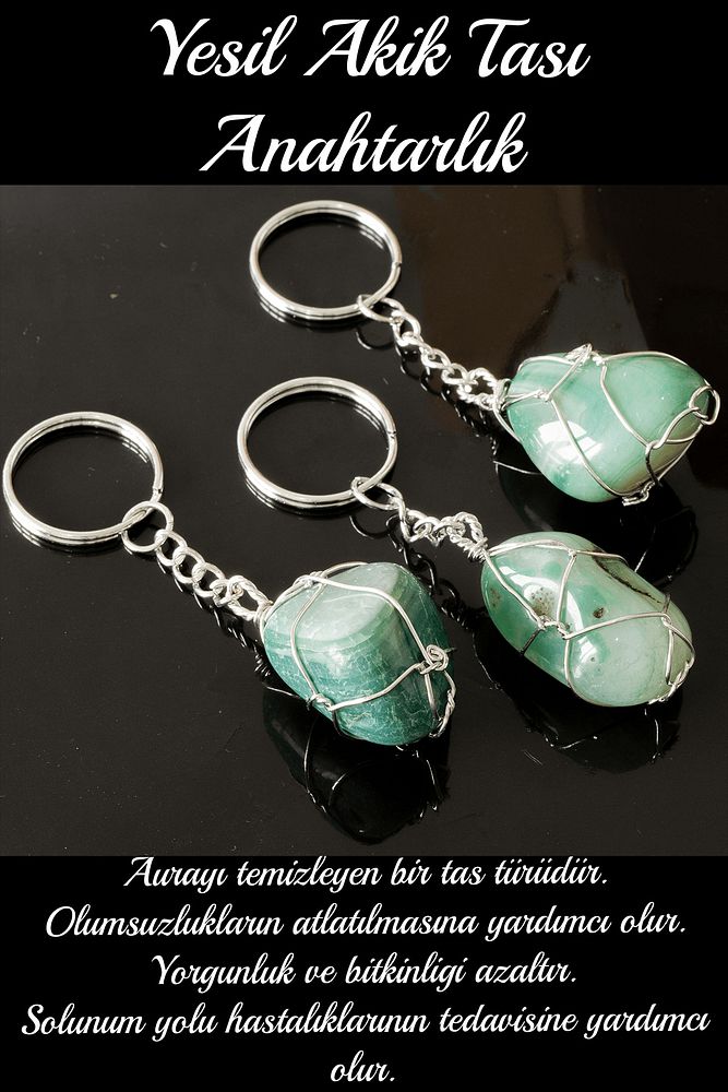 Yeşil akik taşı anahtarlık  Modelimiz Ustalarımız tarafından özenle imal edilmiştir. Anahtarlıklar yapım aşaması yaklaşık 2-3 saat içerisinde tek tek bayanlarımız tarafından özenle tel sargı yapılmaktadır. Bu işlem zor ve meşakatli bir işlemdir. Garantili ve Orijinal anahtarlık, Ürünlerimize hemen sahip olmak için hemen sipariş verebilirsiniz. Doğal Taş Anahtarlık çeşitlerimize mutlaka göz atmalısınız!