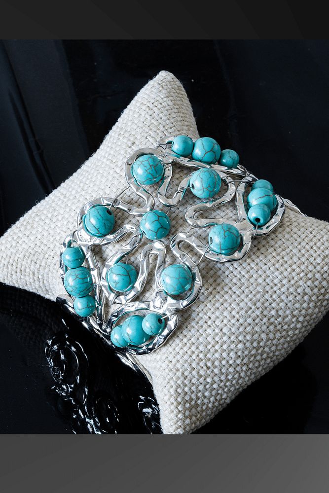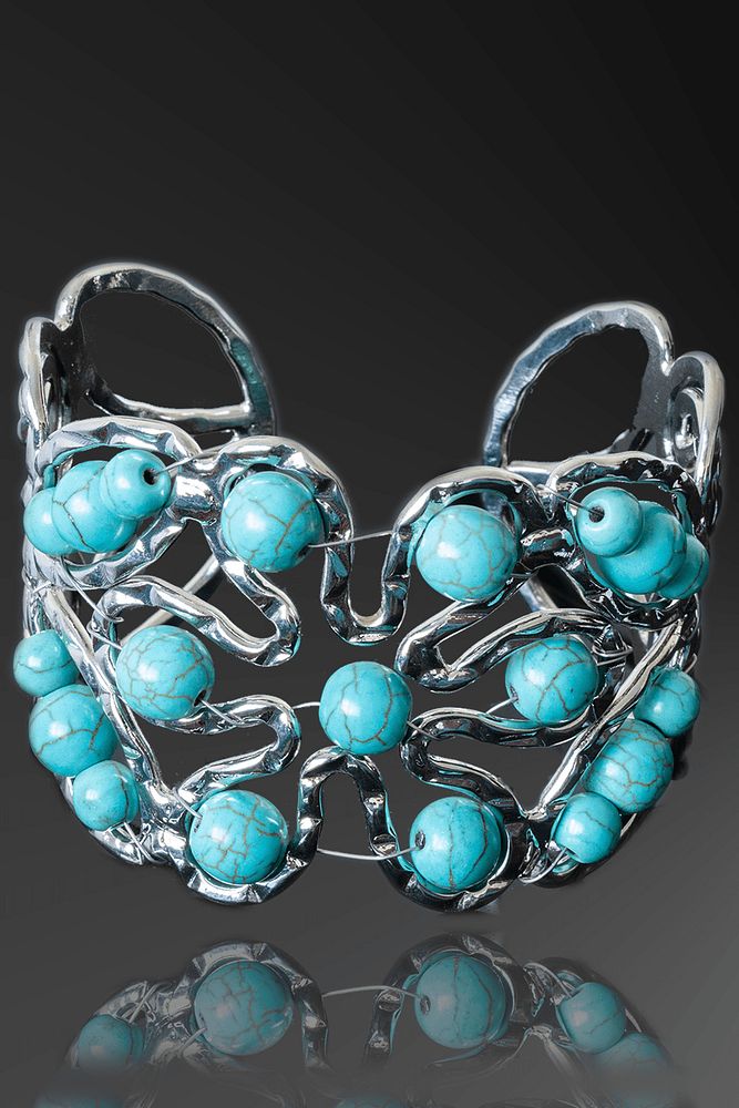 Sertifikalı Telkari İşlemeli Kelepçe Model Firuze Taşı Bileklik - Ayarlamalı