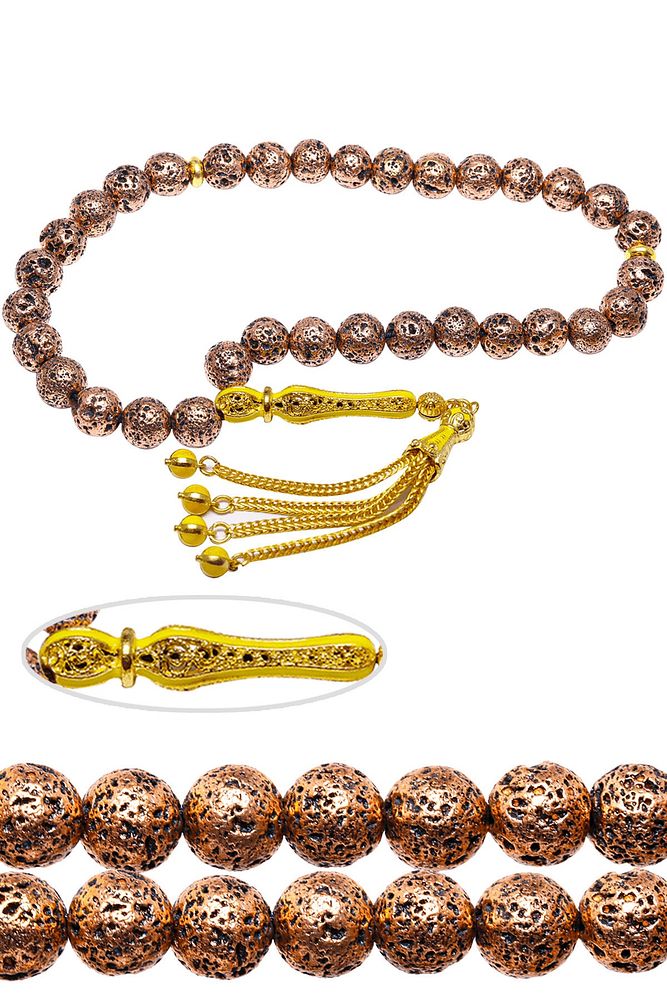 Sertifikalı Telkari Püskül Bakır Renkli Doğal Lav Taşı Tesbih