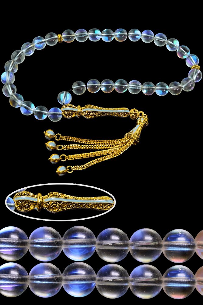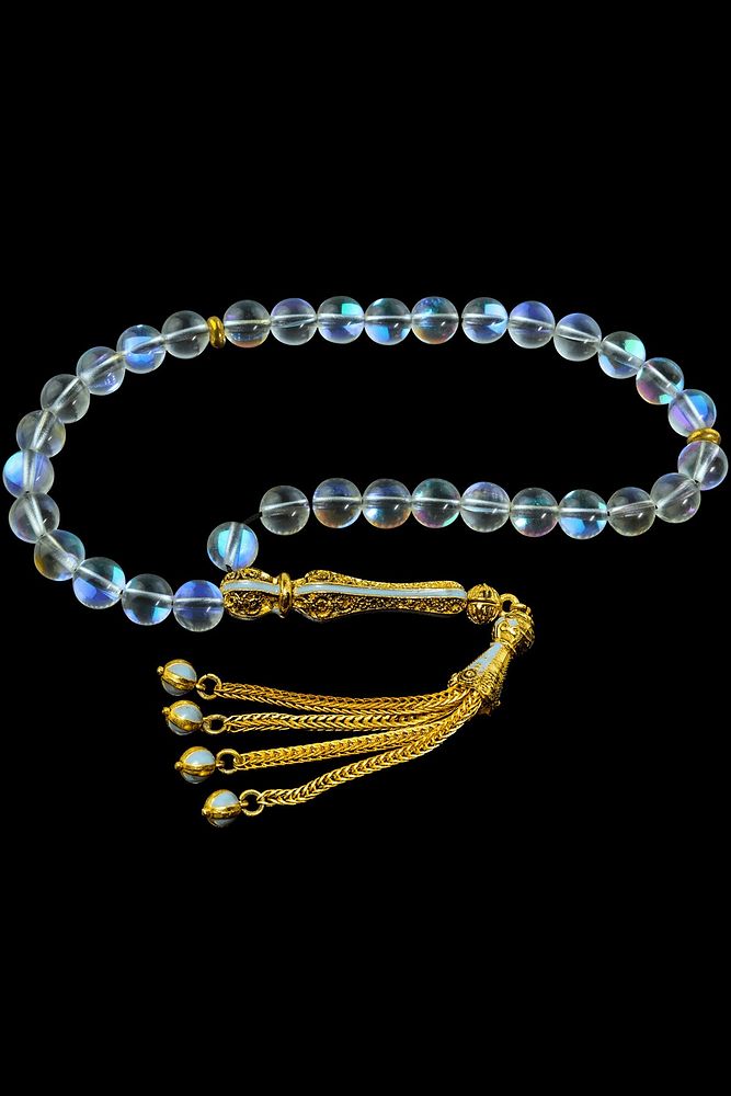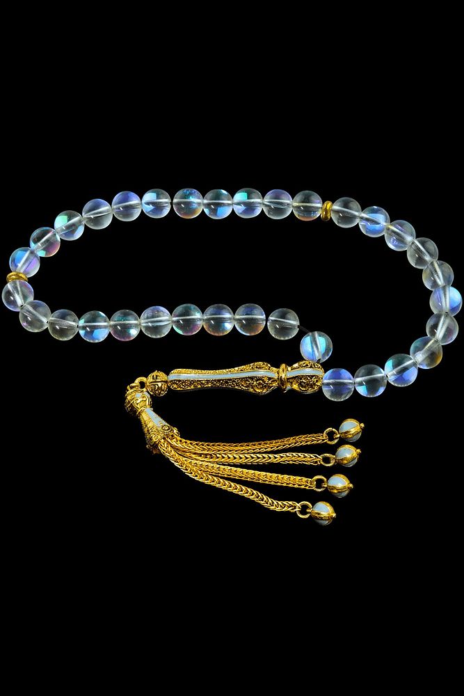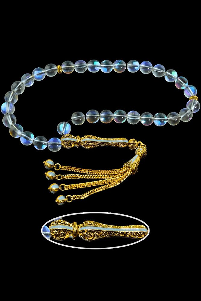 Sertifikalı Telkari Püskül Beyaz Doğal Termal Kuvars Taşı Tesbih