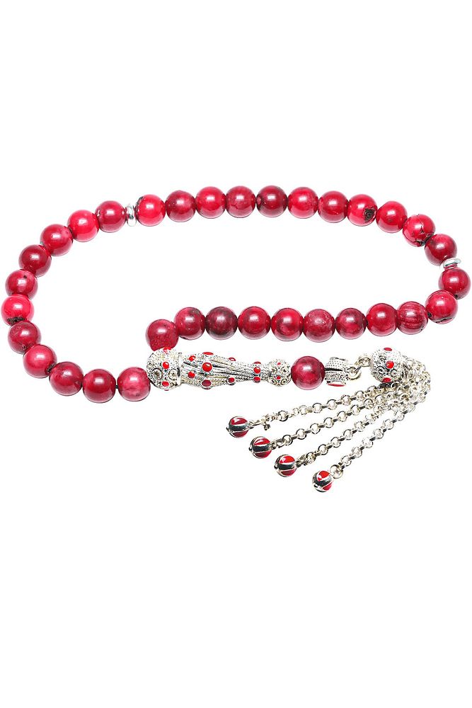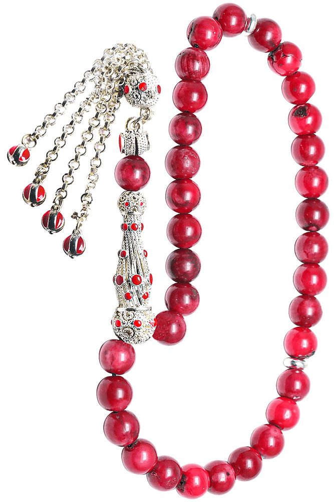 Ürün ya da Doğal Taş Açıklaması; ; (Volkanik Enerji Yanardağ Taşı); ; Mercan taşı tesbih modelleri, Denizden çıkan doğal canlıdır. Zaman içerisinde fosilleşmesi sonucu atölyemize gelir ve usta ellerde tane tane işlenir. Ürünlerimiz el işciliği olduğu için sınırlı sayıda üretilmektedir. Tasarımlarımızda kullandığımız taşları Dünya\'nın en kaliteli doğal taşlarını ithal etmekteyiz. Tasarımlarımızda kullandığımız doğal taşların hiç biri birbirinin aynısı olmadığı için küçükte olsa farklılık gösterebilir. ; ; Bu tasarımda; Doğal kırmızı mercan taşı kullanılmıştır. Beyaz kırmızı mineli 24 ayar beyaz altın kaplama imame ve püskül seti kullanılmıştır. Çift kaplama atıldığı için renk atmaz ve kararmaz bir yapıya sahiptir. Yedek ip ile gönderim sağlanır. ; ; Üretildiği Taş; Mercan Taşı; Ana Renk; Doğal Renk; Ağırlık; 20-30 gr; Tane Şekli; 8x8 mm; Tane Ölçüsü; Küre Kesim; Toplam Uzunluk; 20-30 cm; İmame ve Püskül Maddesi; Düşük Ayar Gümüş;