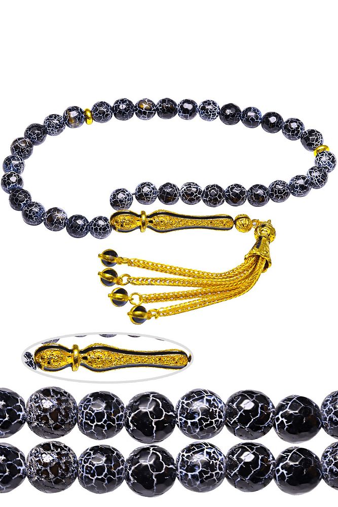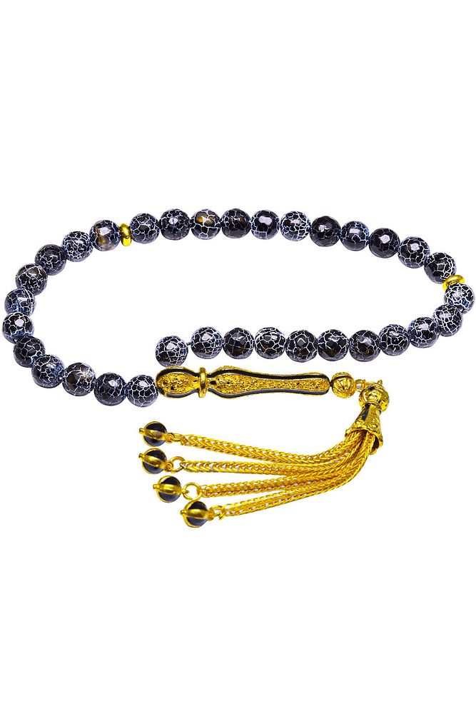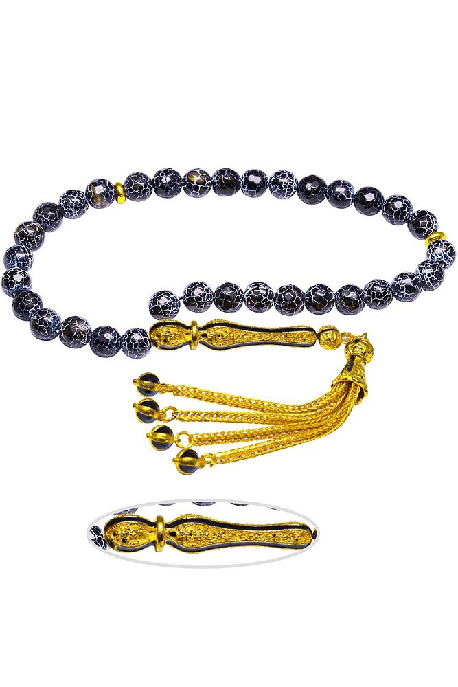 Sertifikalı Telkari Püskül Doğal Siyah Akik Taşı Tesbih