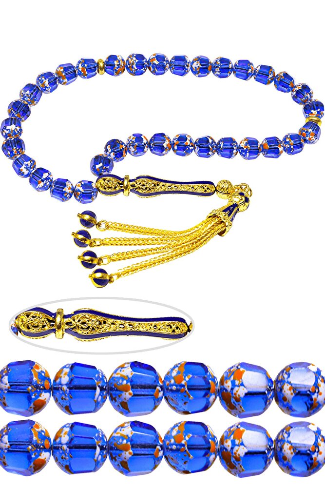 Sertifikalı Telkari Püskül Doğal Üzeri Koruyucu Boya Kaplamalı Doğal Mavi Kuvars Taşı Tesbih
