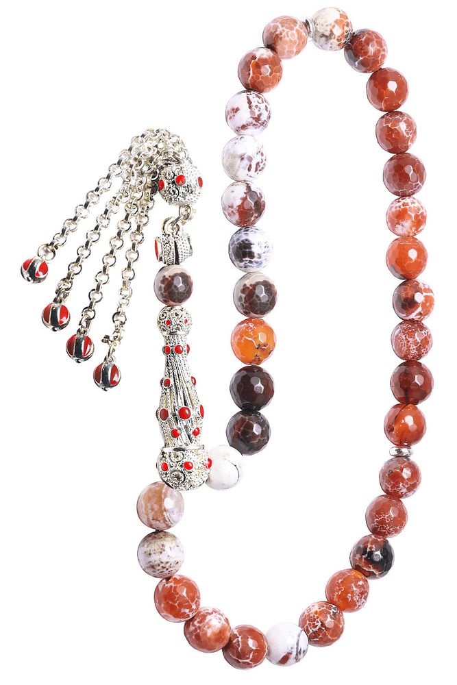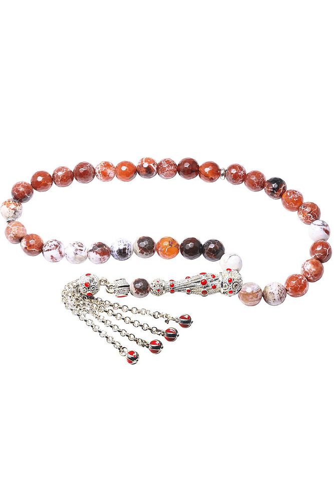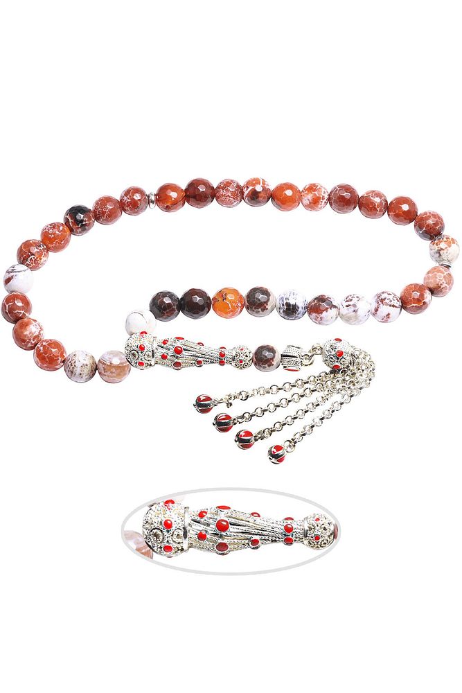 Sertifikalı Telkari Püskül Iri Boy Kırmızı Doğal Akik Taşı Tesbih