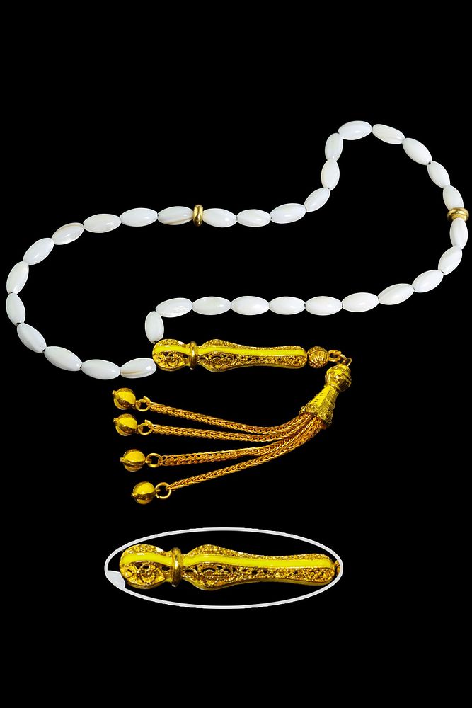 Sertifikalı Telkari Püsküllü Doğal Sedef Taşı Tesbih