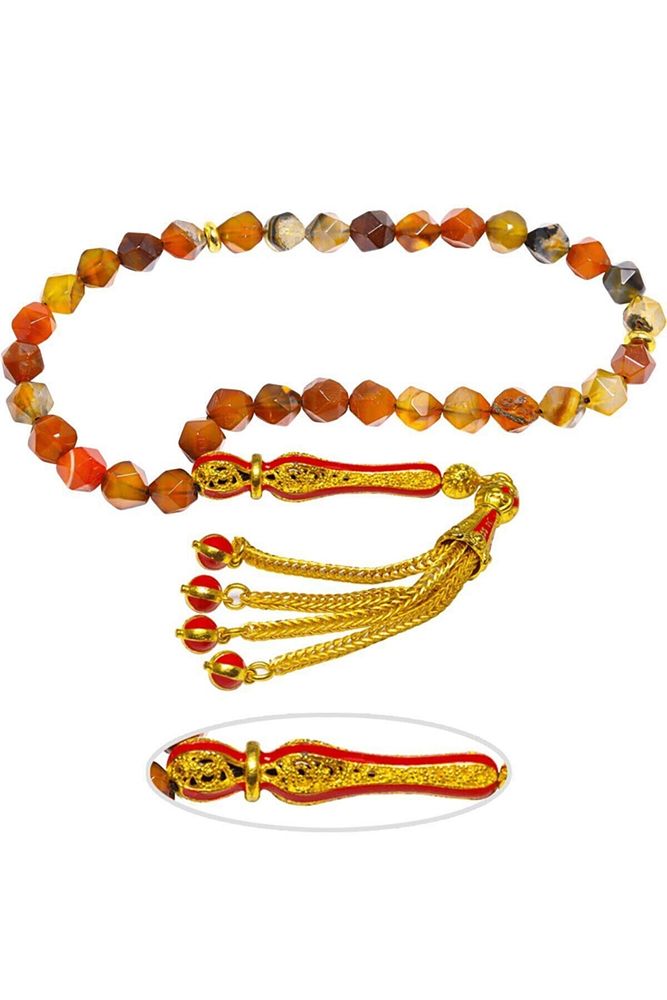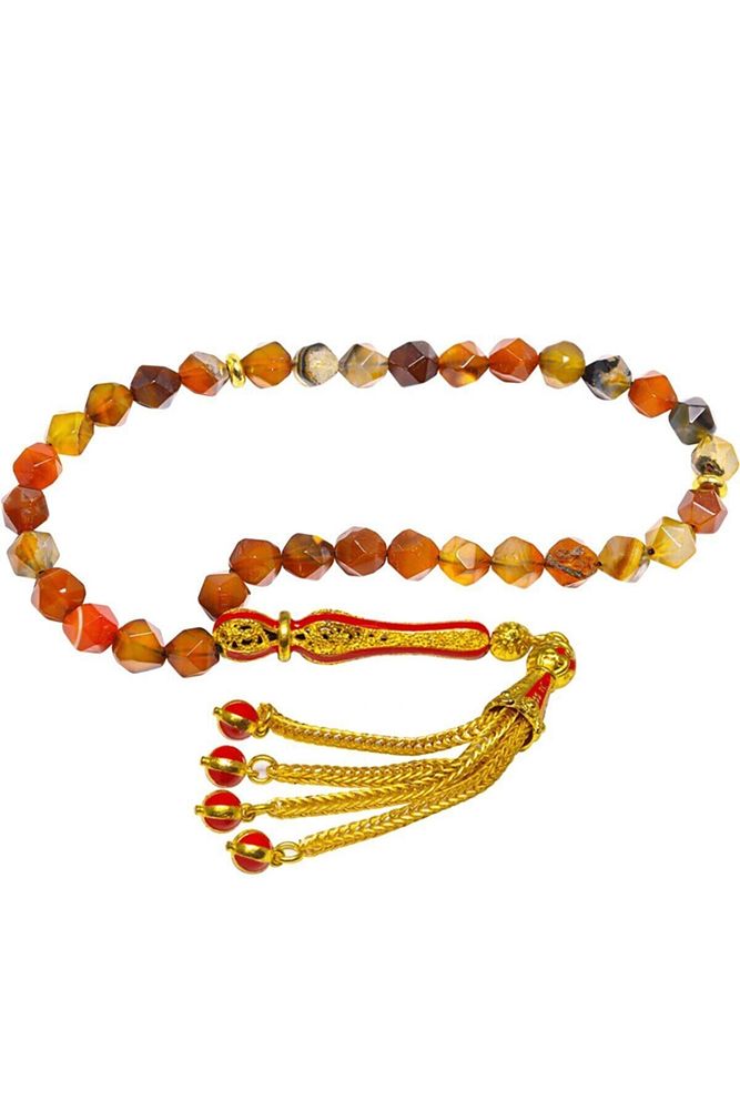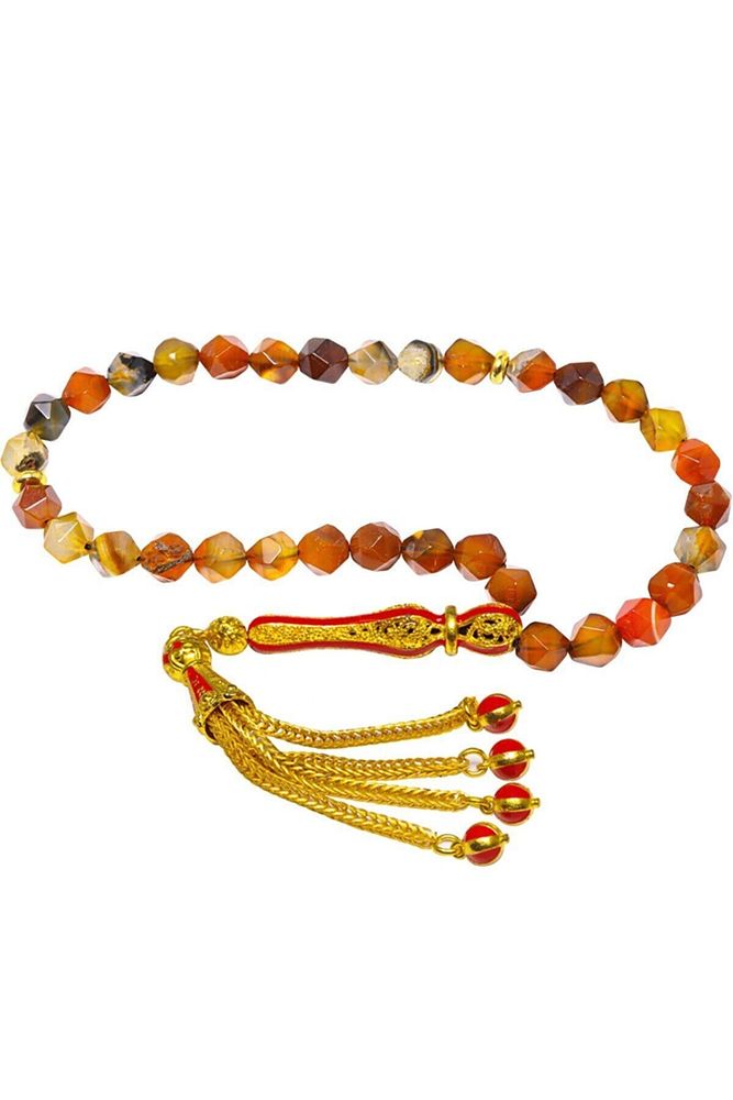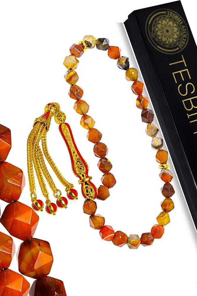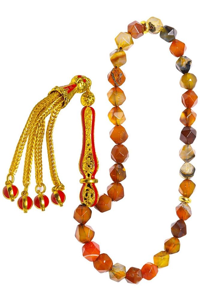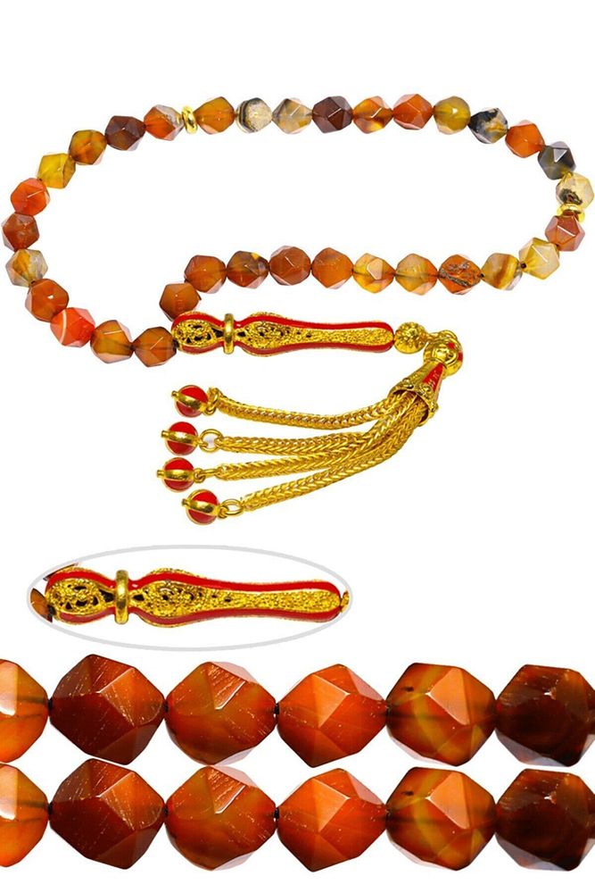 Sertifikalı Telkari Püsküllü Elmas Kesim Doğal Turuncu Akik Taşı Tesbih