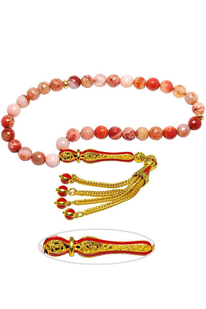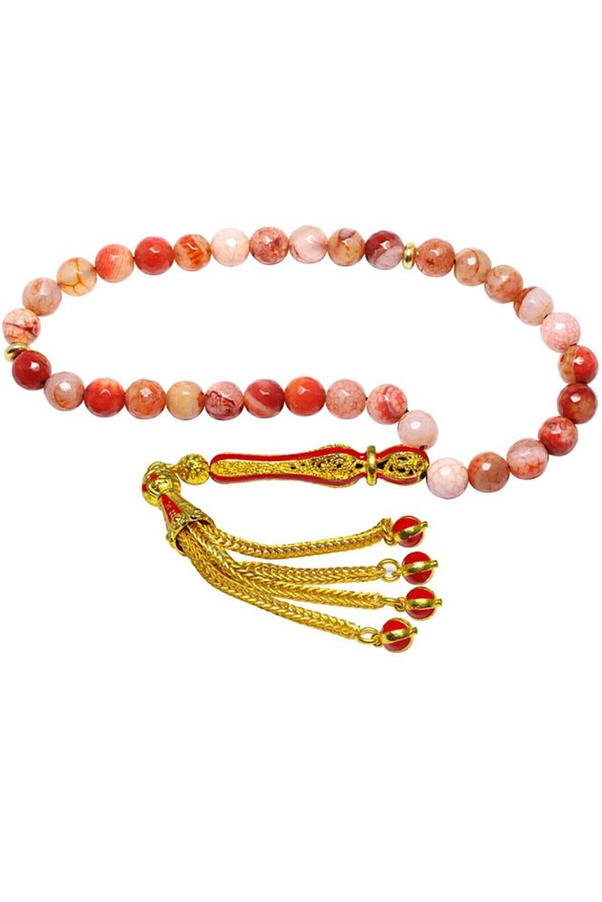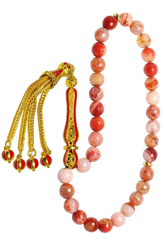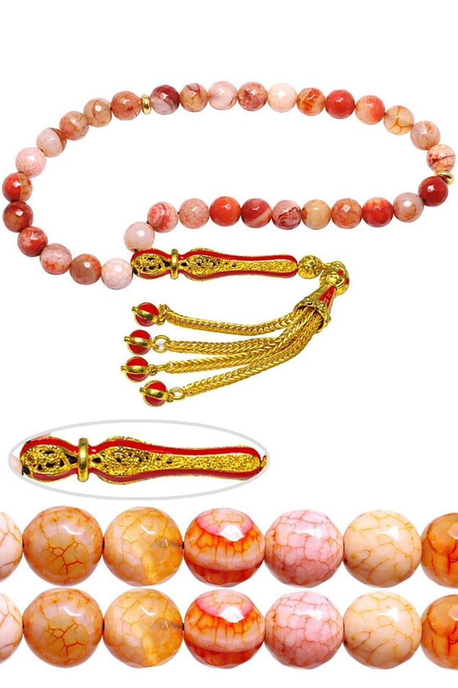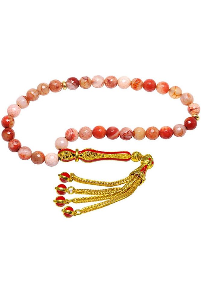 Sertifikalı Telkari Püsküllü Turuncu Doğal Akik Taşı Tesbih