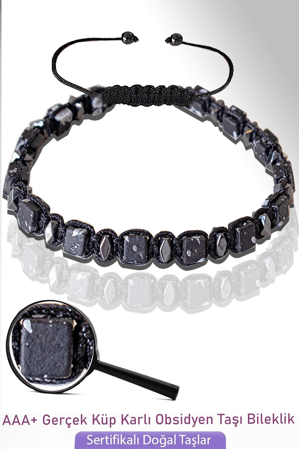 Sertifikalı Terahertz - Karlı Obsidyen Taşı Bileklik - Ayarlamalı