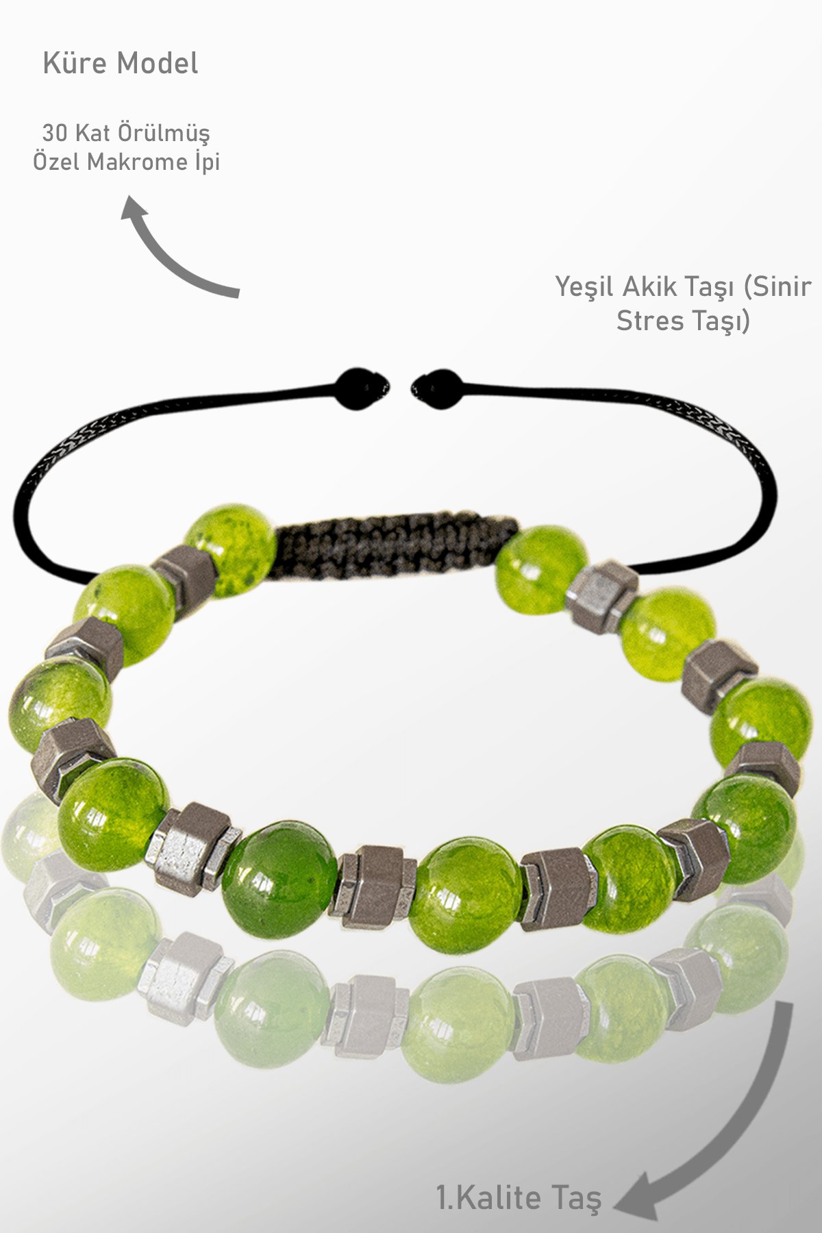 Sertifikalı Terahertz - Yeşil Akik Taşı Bileklik - Ayarlamalı