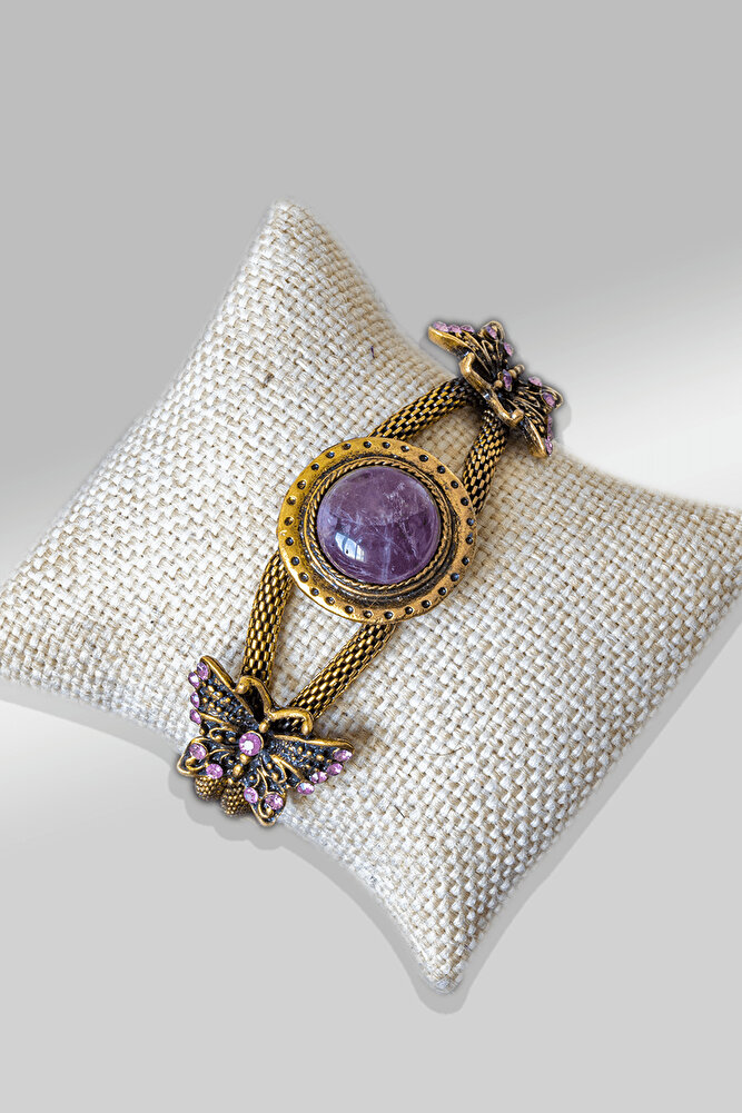 Sertifikalı Tilki Kuyruğu Model Kelebek Ametist Taşı Bileklik - Ayarlamalı